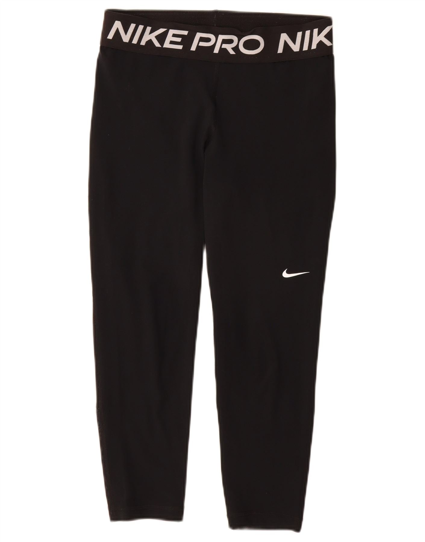 NIKE Womens Dri Fit Graphic Capri Leggings UK 12 Medium Black Polyester