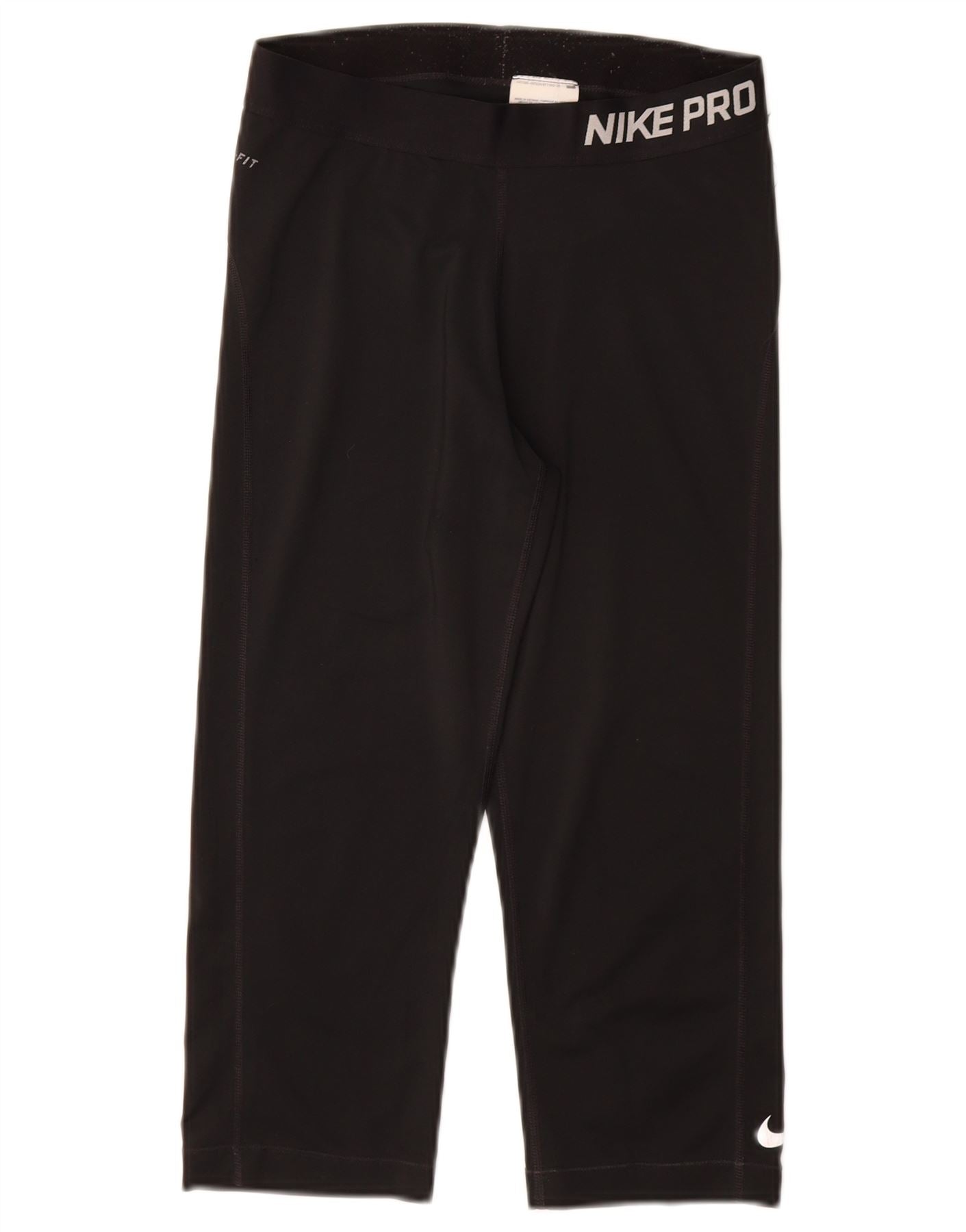 NIKE Womens Dri Fit Graphic Capri Leggings UK 12 Medium Black Polyester