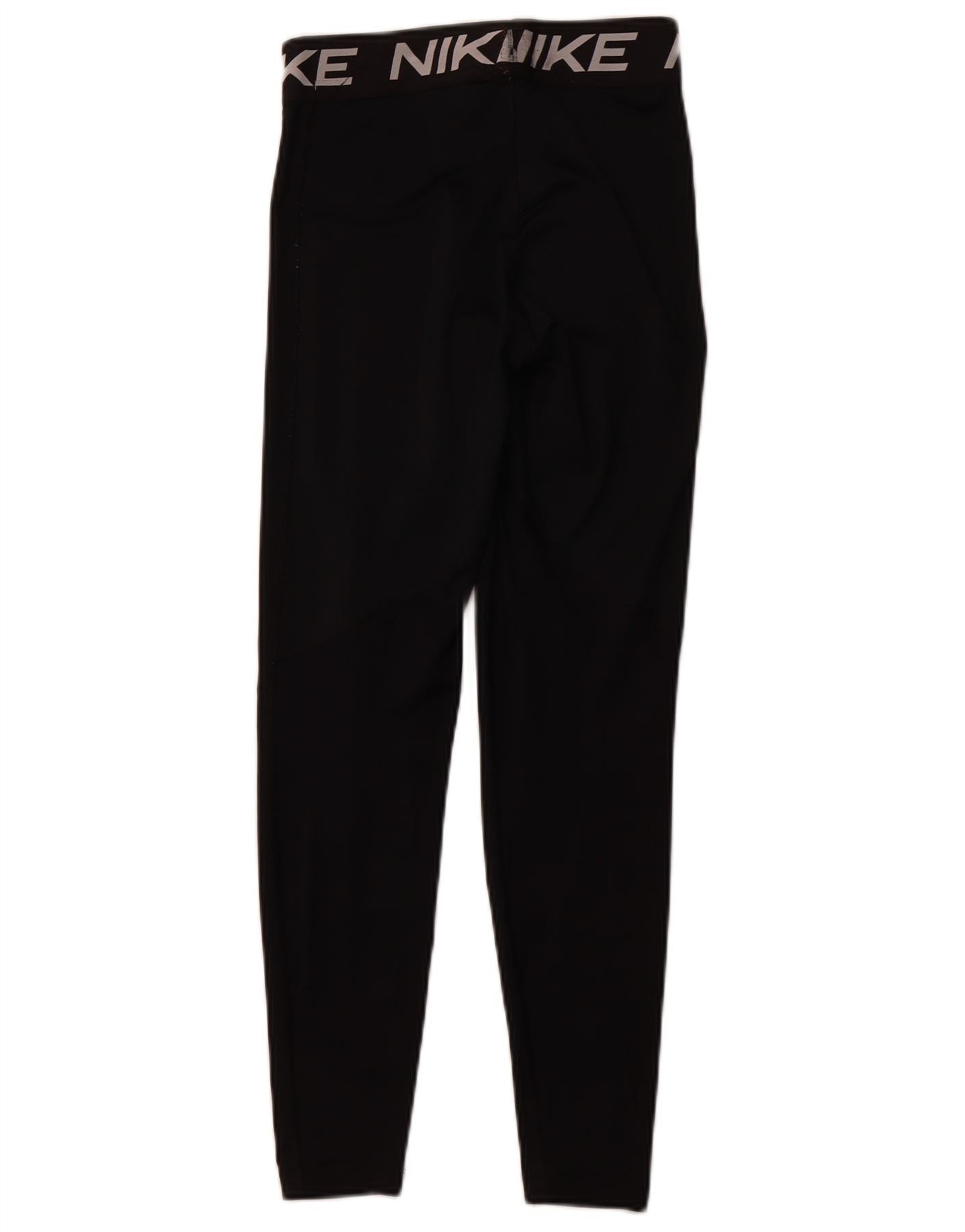 NIKE Womens Dri Fit Graphic Leggings UK 8 Small Black Polyester