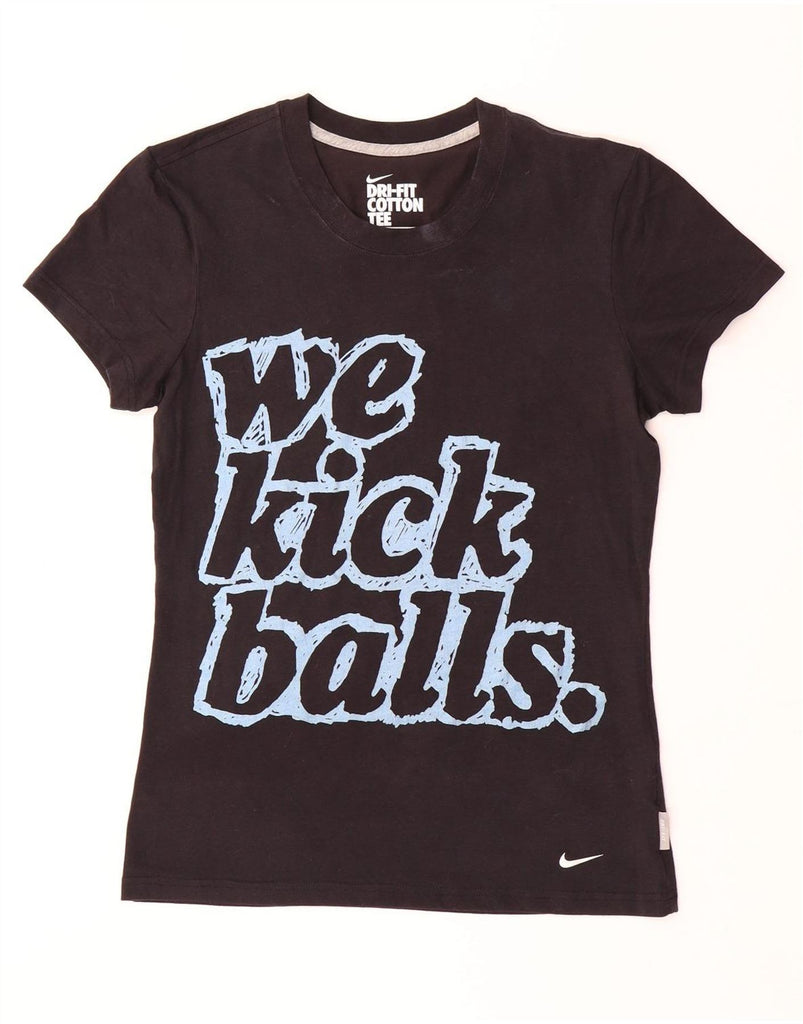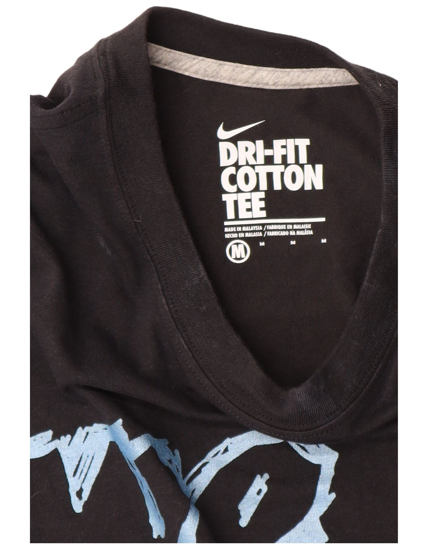 NIKE Womens Dri Fit Graphic T-Shirt Top UK 12 Medium Black Cotton