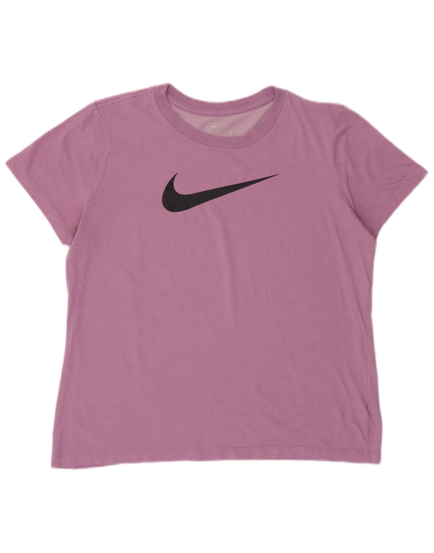 NIKE Womens Dri Fit Graphic T-Shirt Top UK 16 Large Purple Cotton
