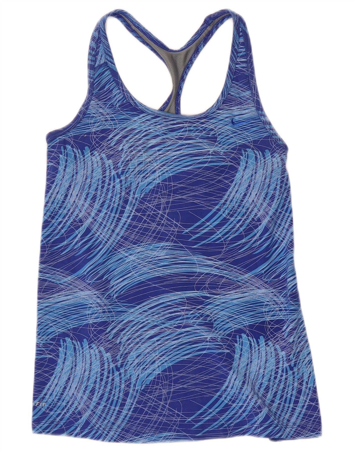 NIKE Womens Dri Fit Graphic Vest Top UK 8 Small Blue Geometric Cotton