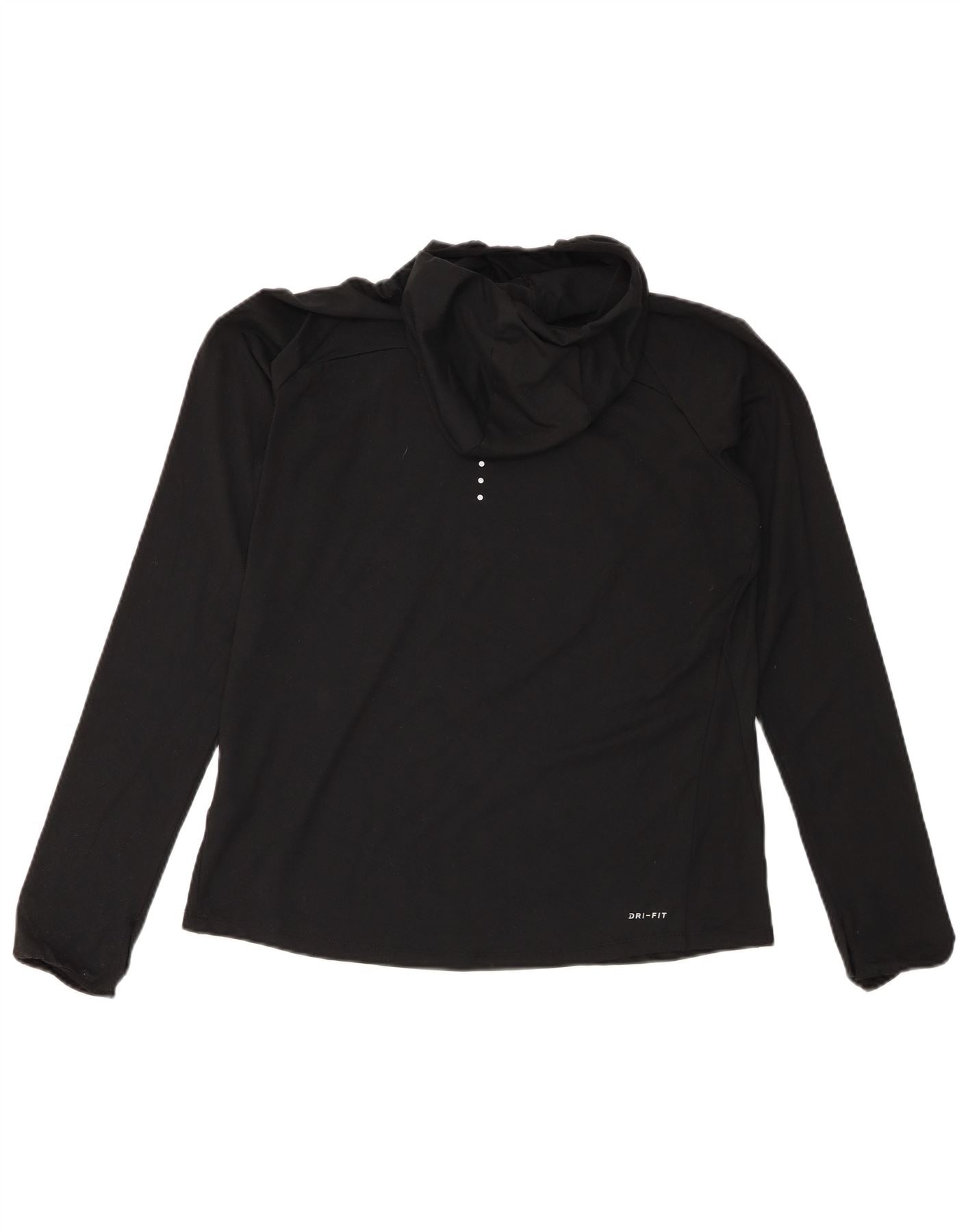 NIKE Womens Dri Fit Hooded Top Long Sleeve UK 16 Large Black Polyester