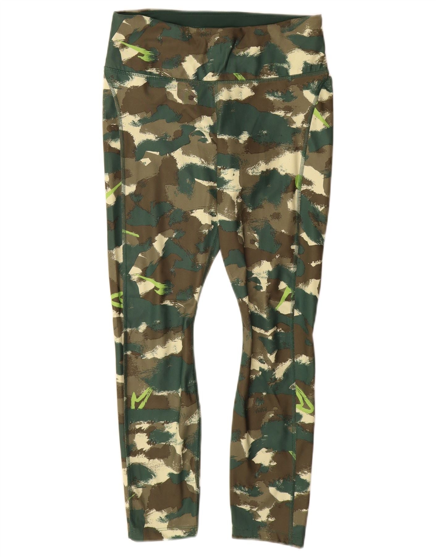 NIKE Womens Dri Fit Leggings UK 12 Medium Green Camouflage Polyester