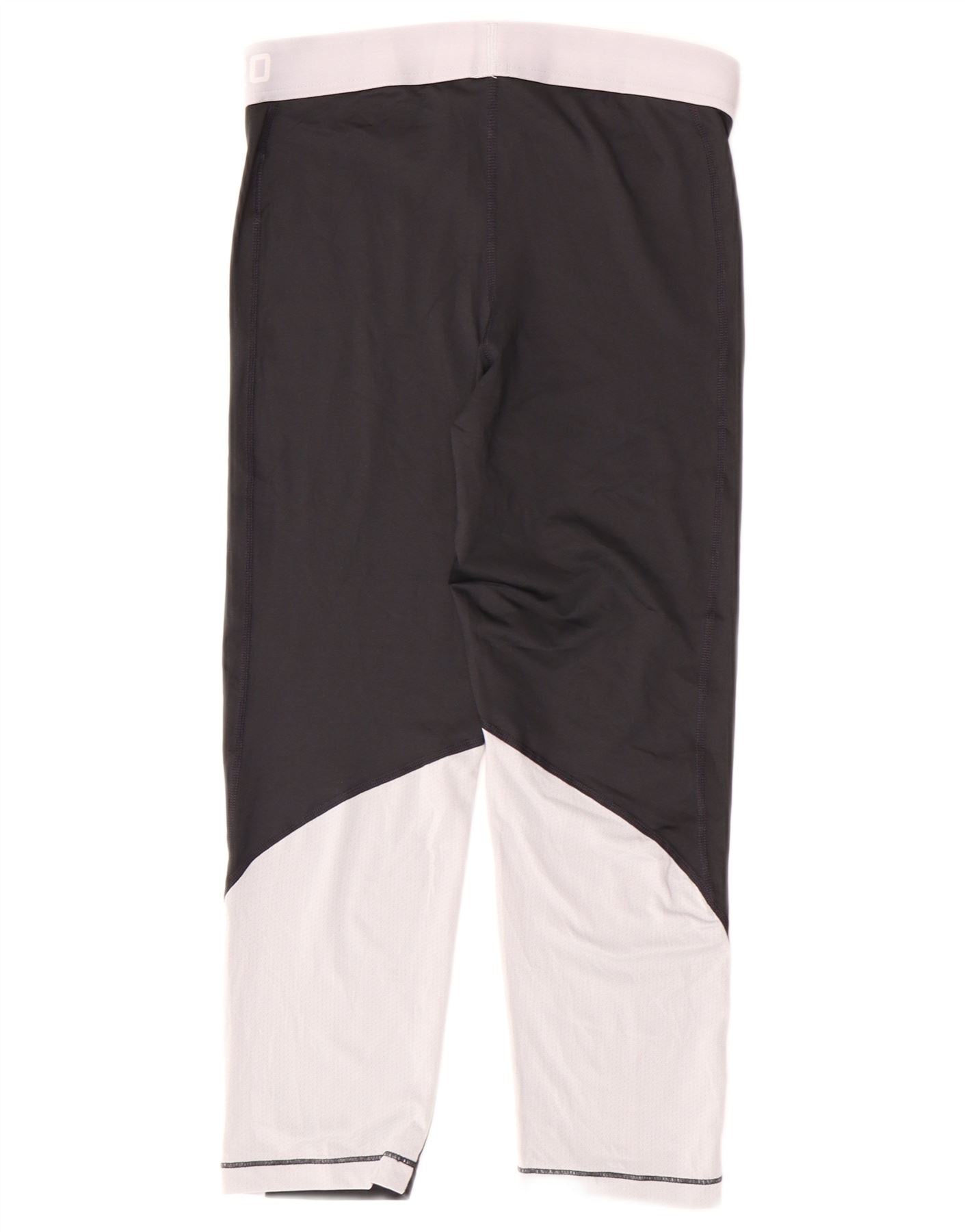 - AI Description: These Nike women's Pro capri trousers are made from a polyester and elastane blend fabric. They feature a colourblock pattern in black and white. The slim fit and pull-on closure offer a sleek silhouette. These performance trousers are breathable and stretchy, ideal for athletics. The capri length provides a modern, athletic look.