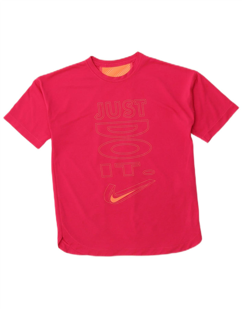 NIKE Womens Dri Fit Loose Fit Graphic T-Shirt Top UK 10 Small Pink Cotton