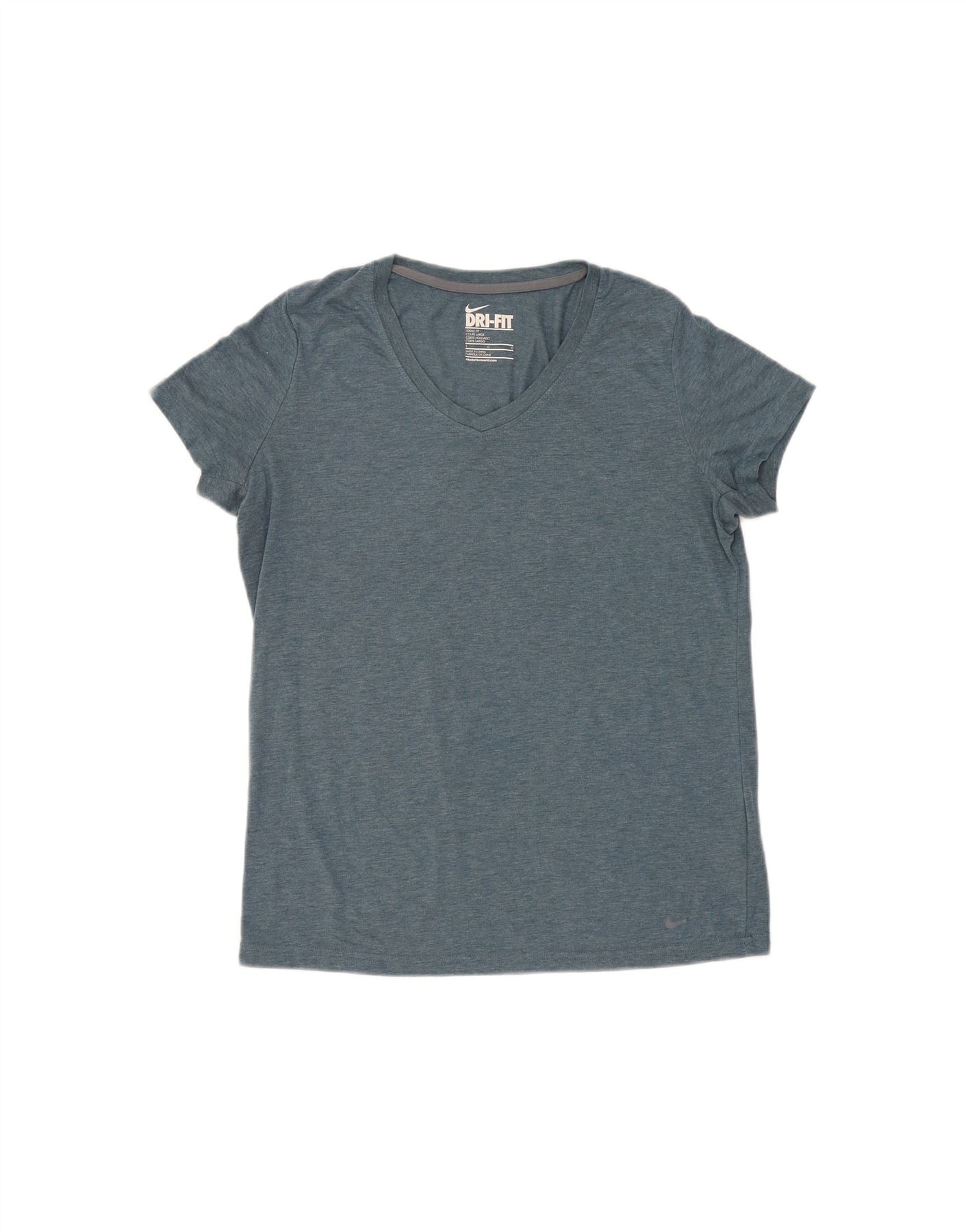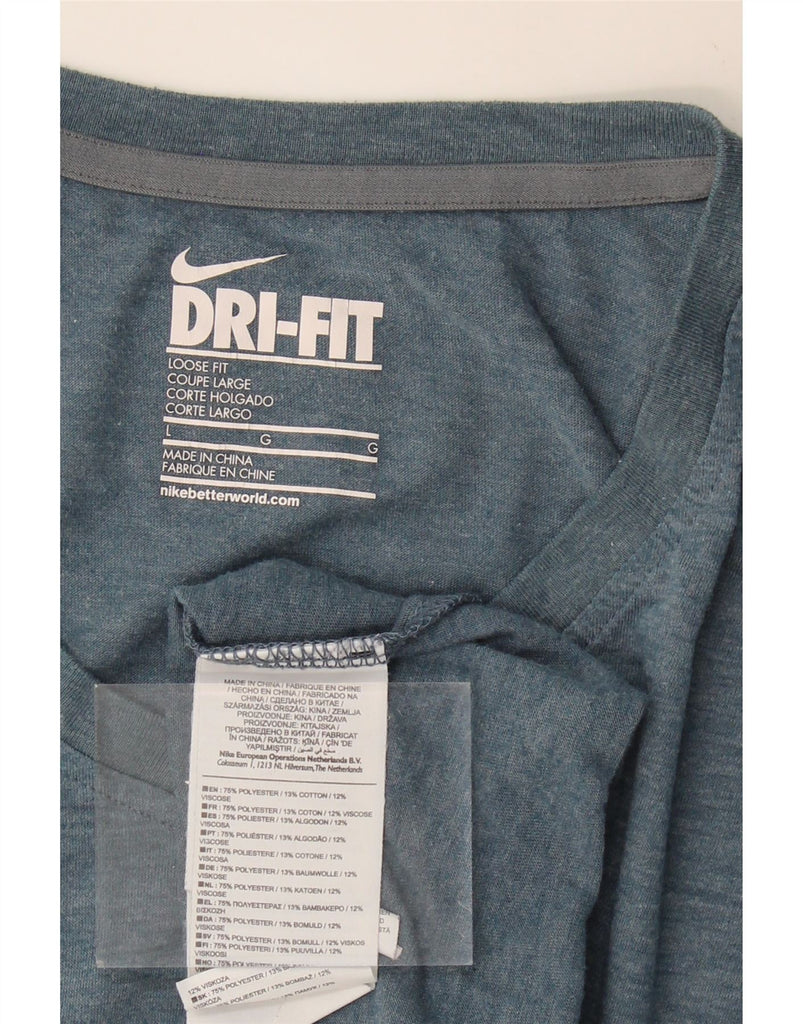 NIKE Womens Dri Fit Loose Fit T-Shirt Top UK 14 Large Blue Polyester