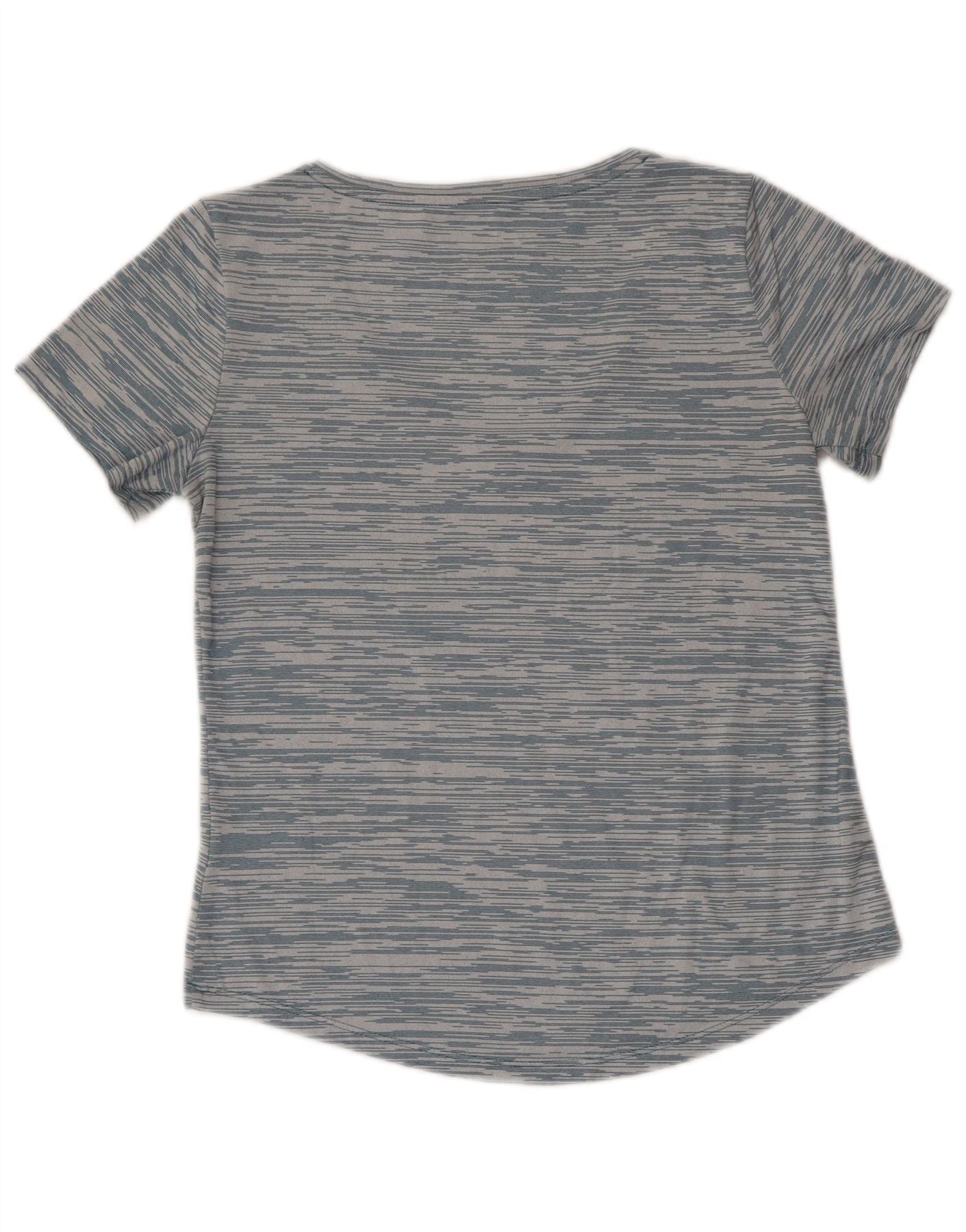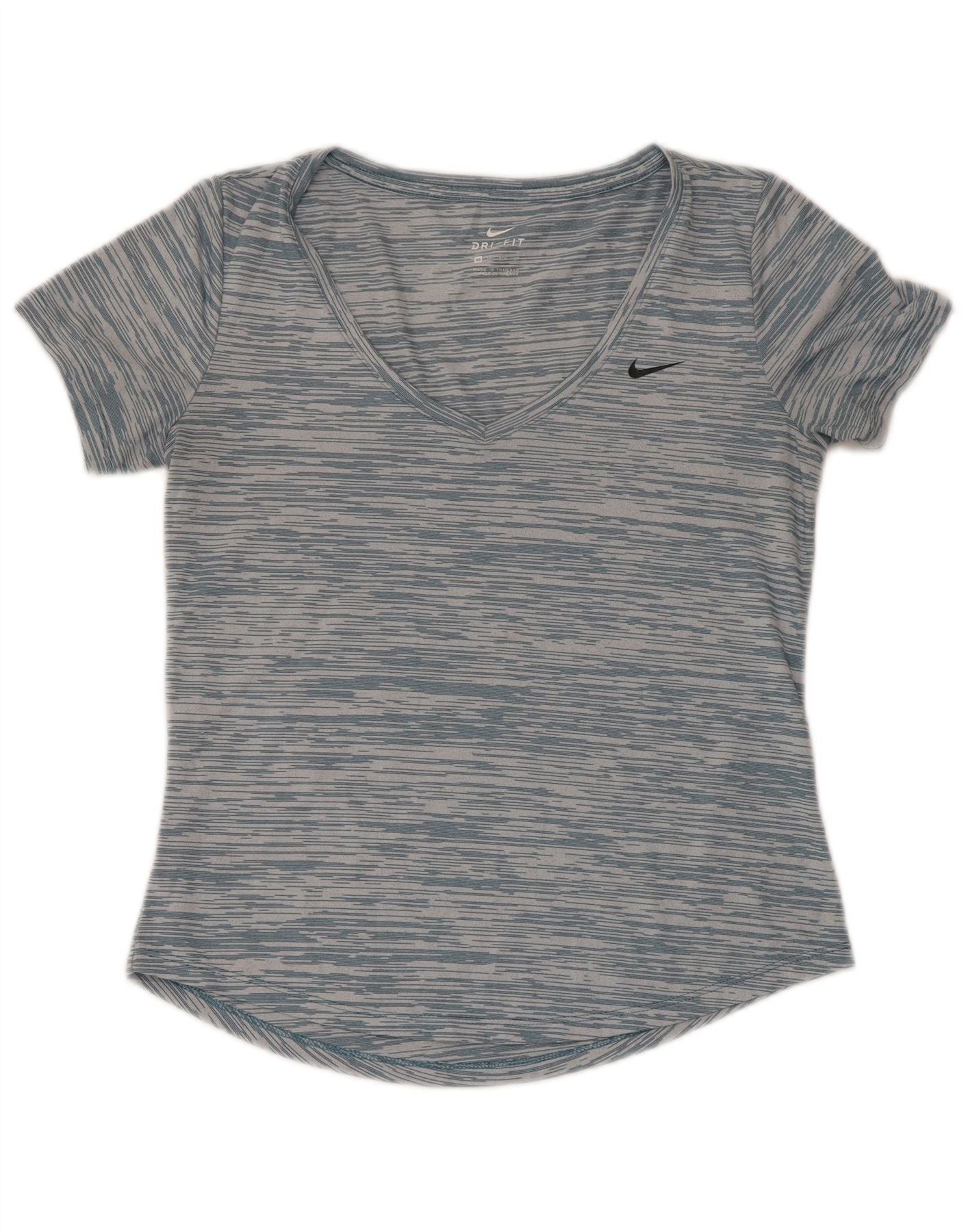 Nike Womens Dri Fit Loose Fit T-Shirt Top UK 6 XS Blue Striped Polyester