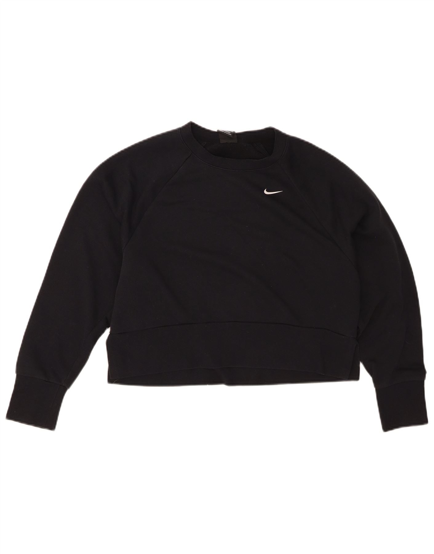 NIKE Womens Dri Fit Oversized Graphic Sweatshirt Jumper UK 10 Small Black