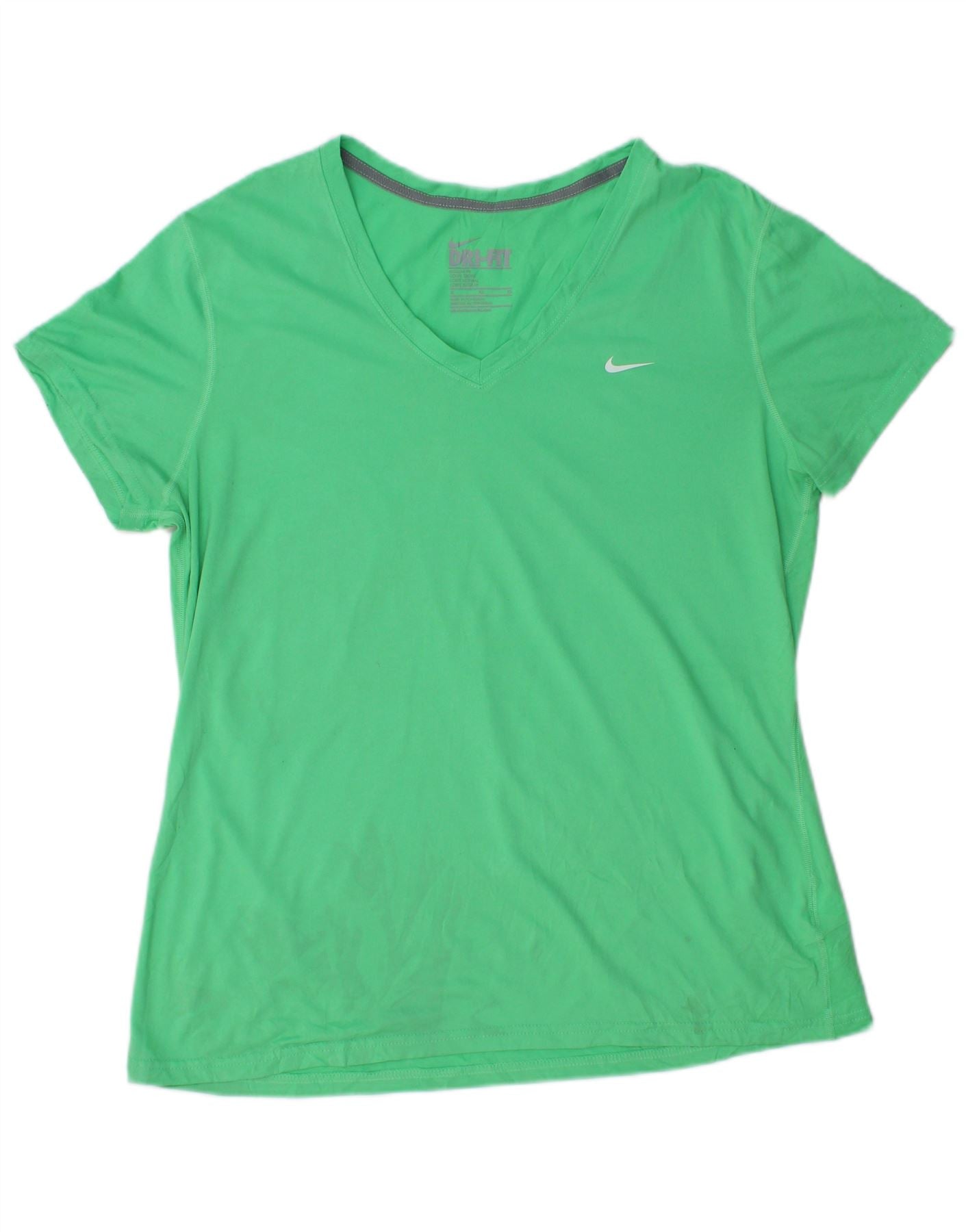 NIKE Womens Dri Fit Regular Fit T-Shirt Top UK 18 XL Green Polyester