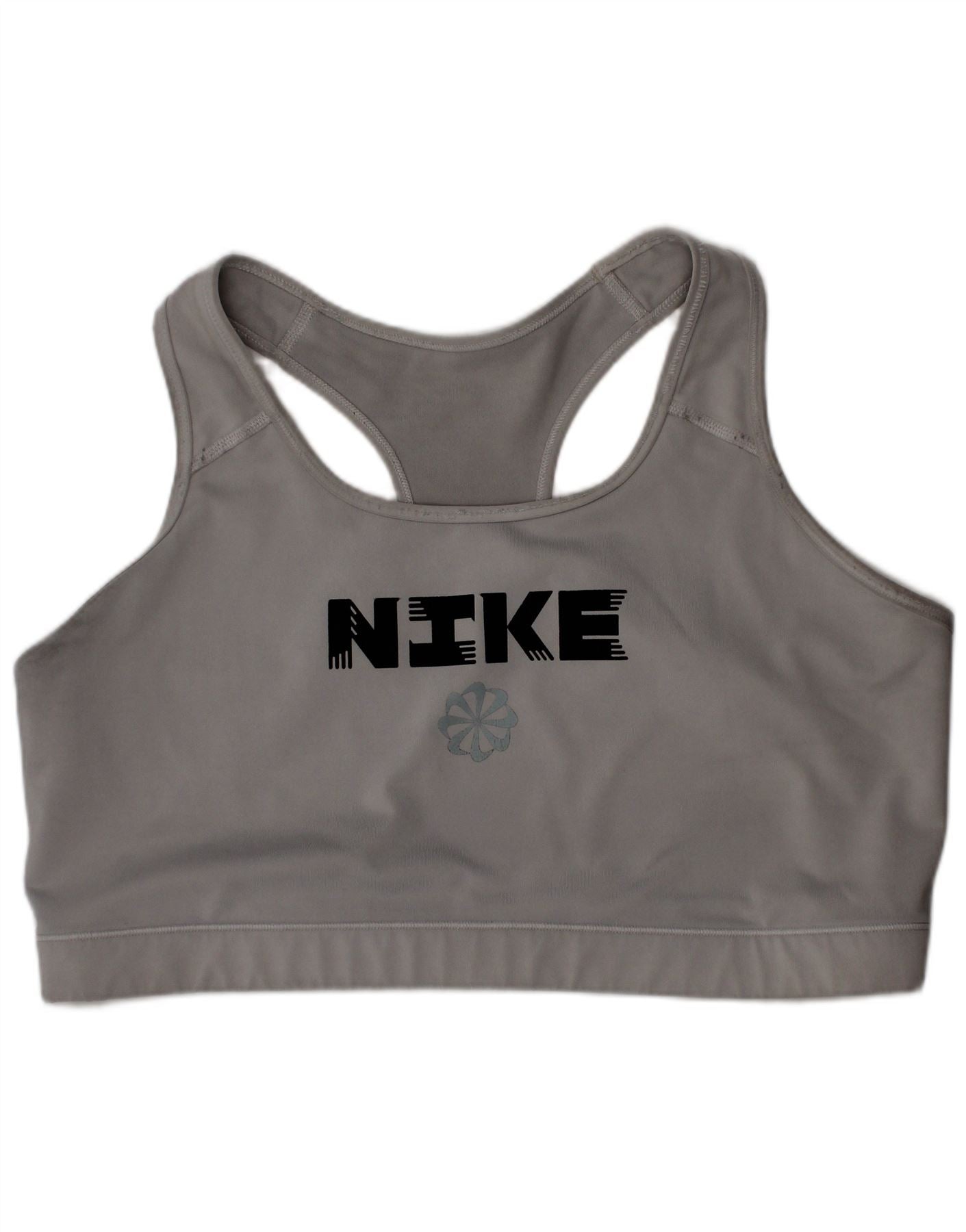 NIKE Womens Dri Fit Sport Bra Graphic Vest Top 2XL Grey Polyester Sports