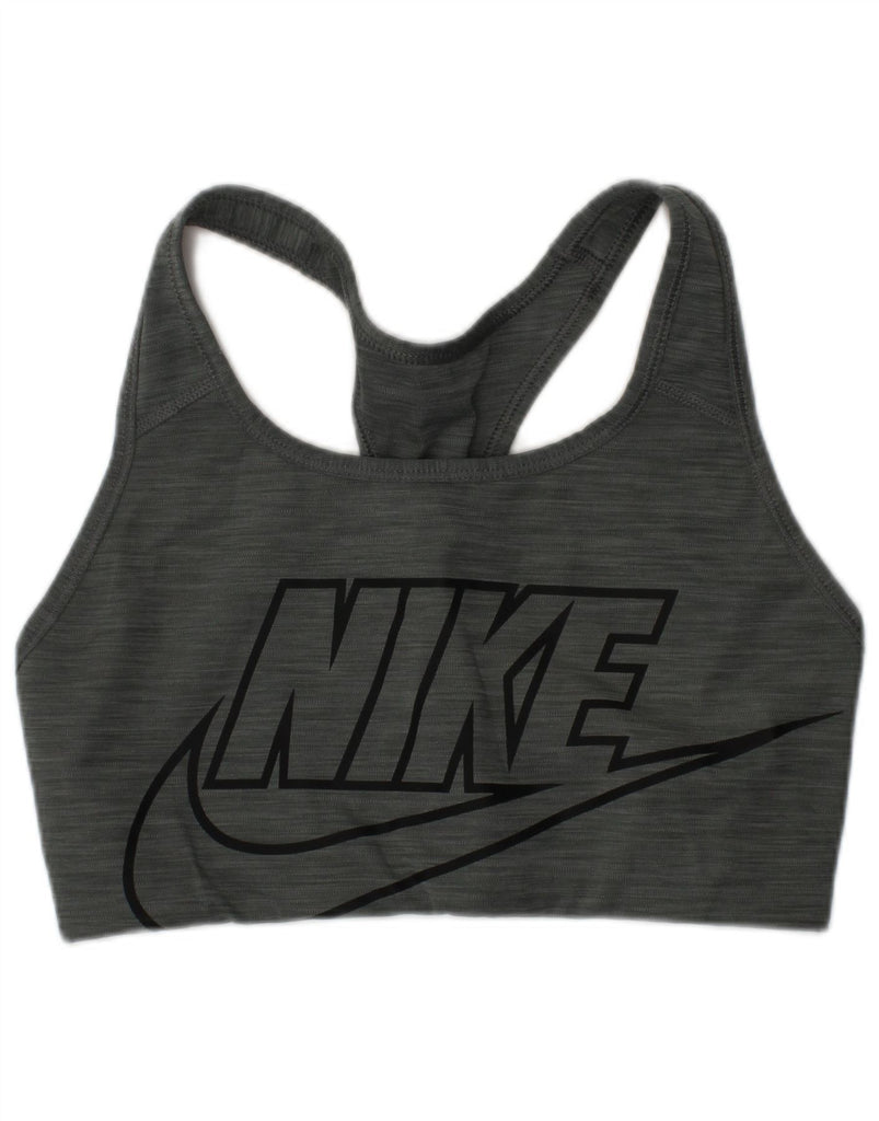 NIKE Womens Dri Fit Sport Bra Graphic Vest Top UK 12 Medium Grey Sports