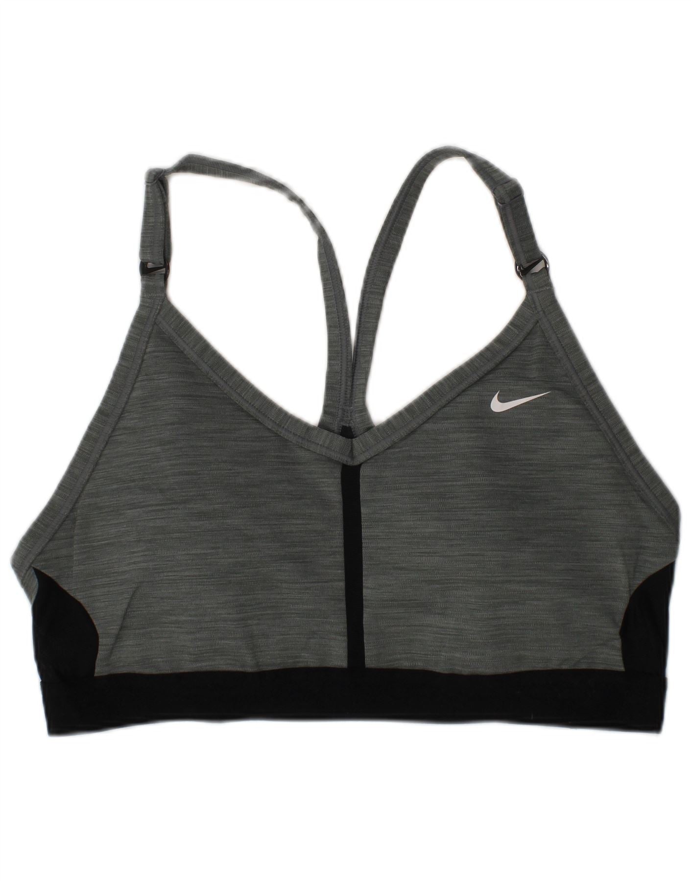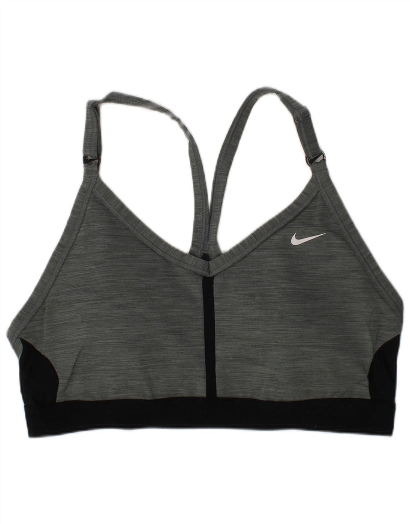 NIKE Womens Dri Fit Sport Bra Vest Top UK 14 Large Grey Polyester Sports