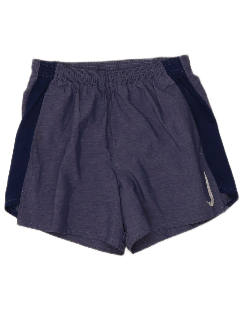 NIKE Womens Dri Fit Sport Shorts UK 10 Small Blue Colourblock Polyester