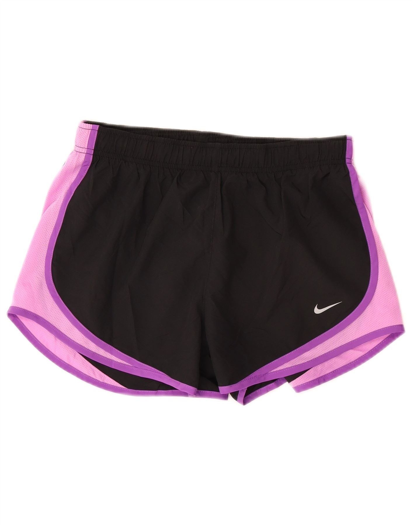 NIKE Womens Dri Fit Sport Shorts UK 12 Medium Black Colourblock Polyester