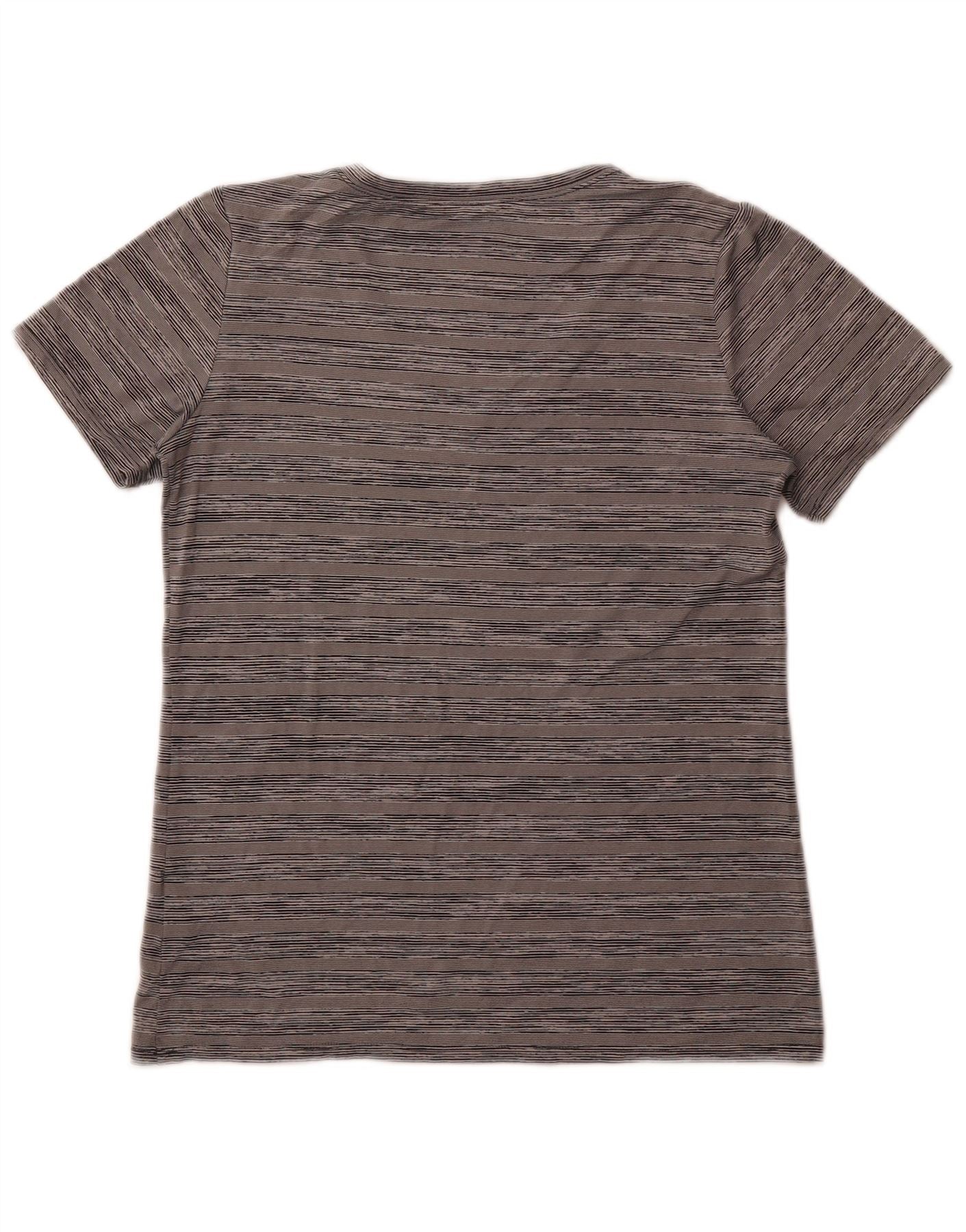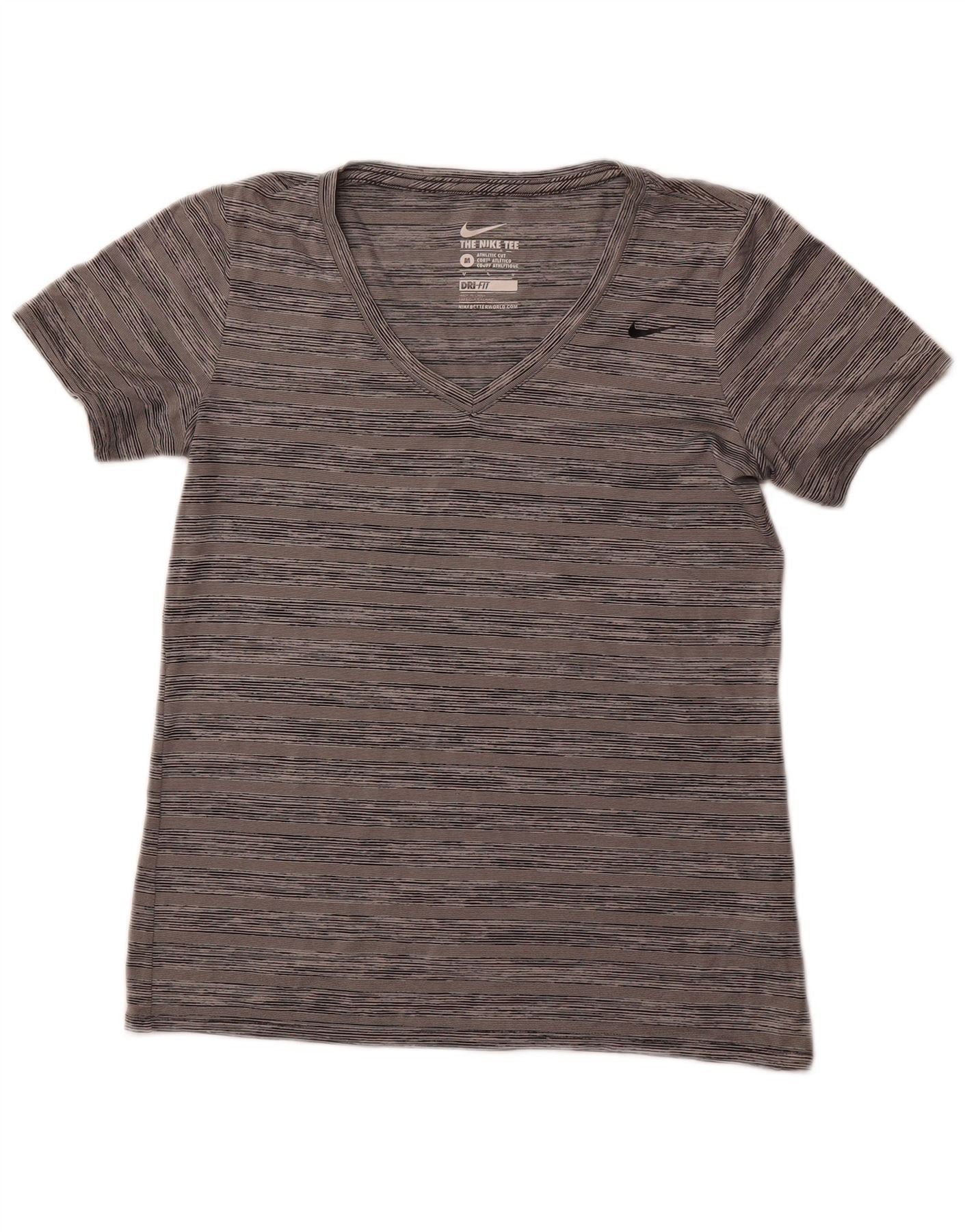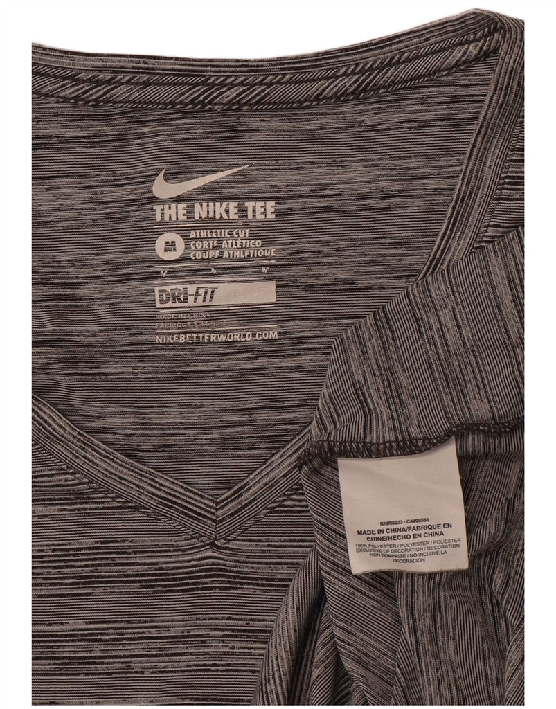 NIKE Womens Dri Fit T-Shirt Top UK 12 Medium Grey Striped Polyester