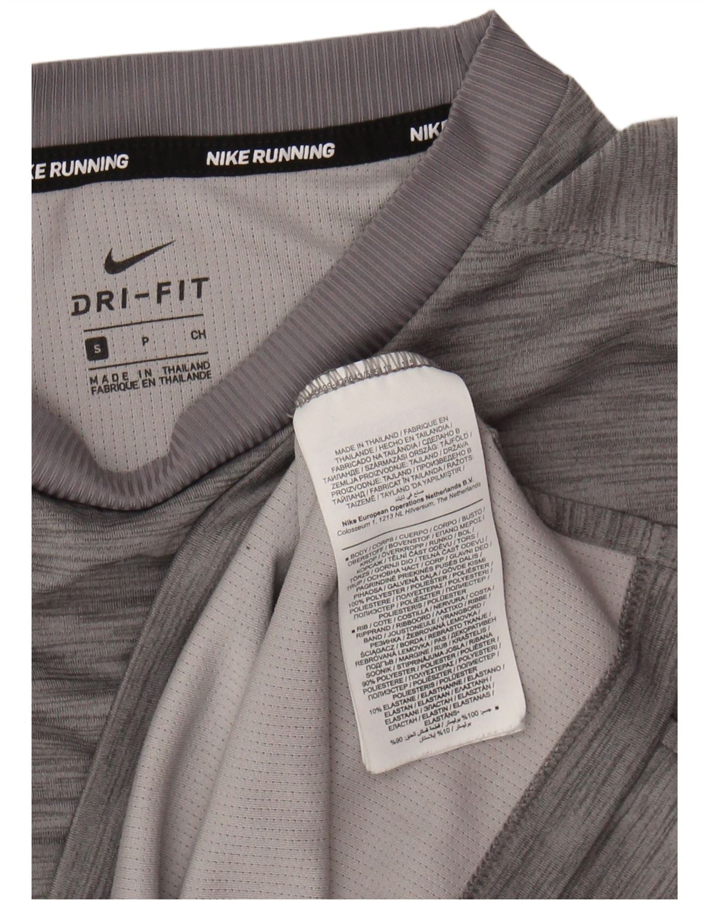 - AI Description: This Nike mens long sleeve top is crafted from a grey polyester knit fabric. Its blend of 90 percent polyester and 10 percent elastane ensures a lightweight, breathable feel. The athletic comfort fit provides ease of movement. It features a classic round neck and long sleeves. This pullover design is ideal for active wear. Designed with Dri-Fit technology, it offers performance benefits. A subtle logo accent completes the sports style.