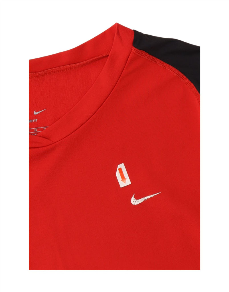 NIKE Womens Dri Fit Top Long Sleeve UK 8/10 Medium Red Colourblock