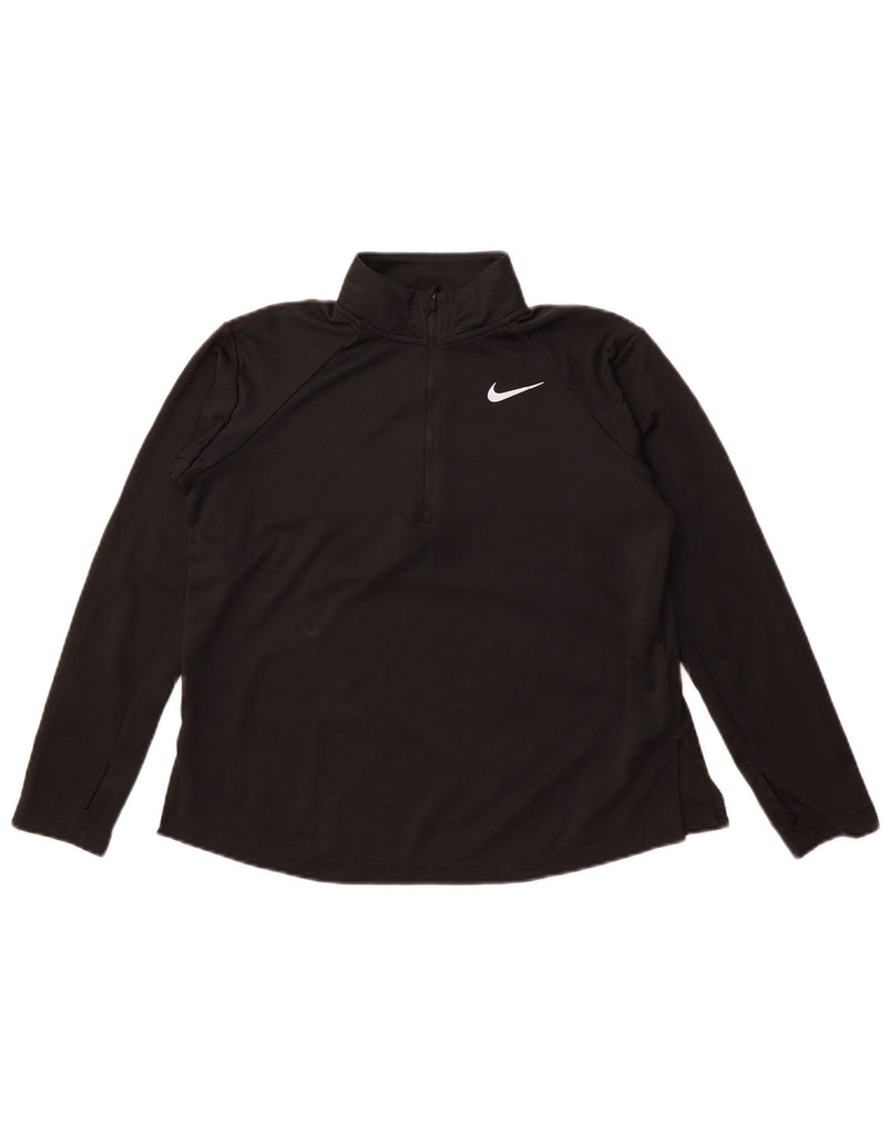 NIKE Womens Dri Fit Zip Neck Pullover Tracksuit Top UK 16 Large Black
