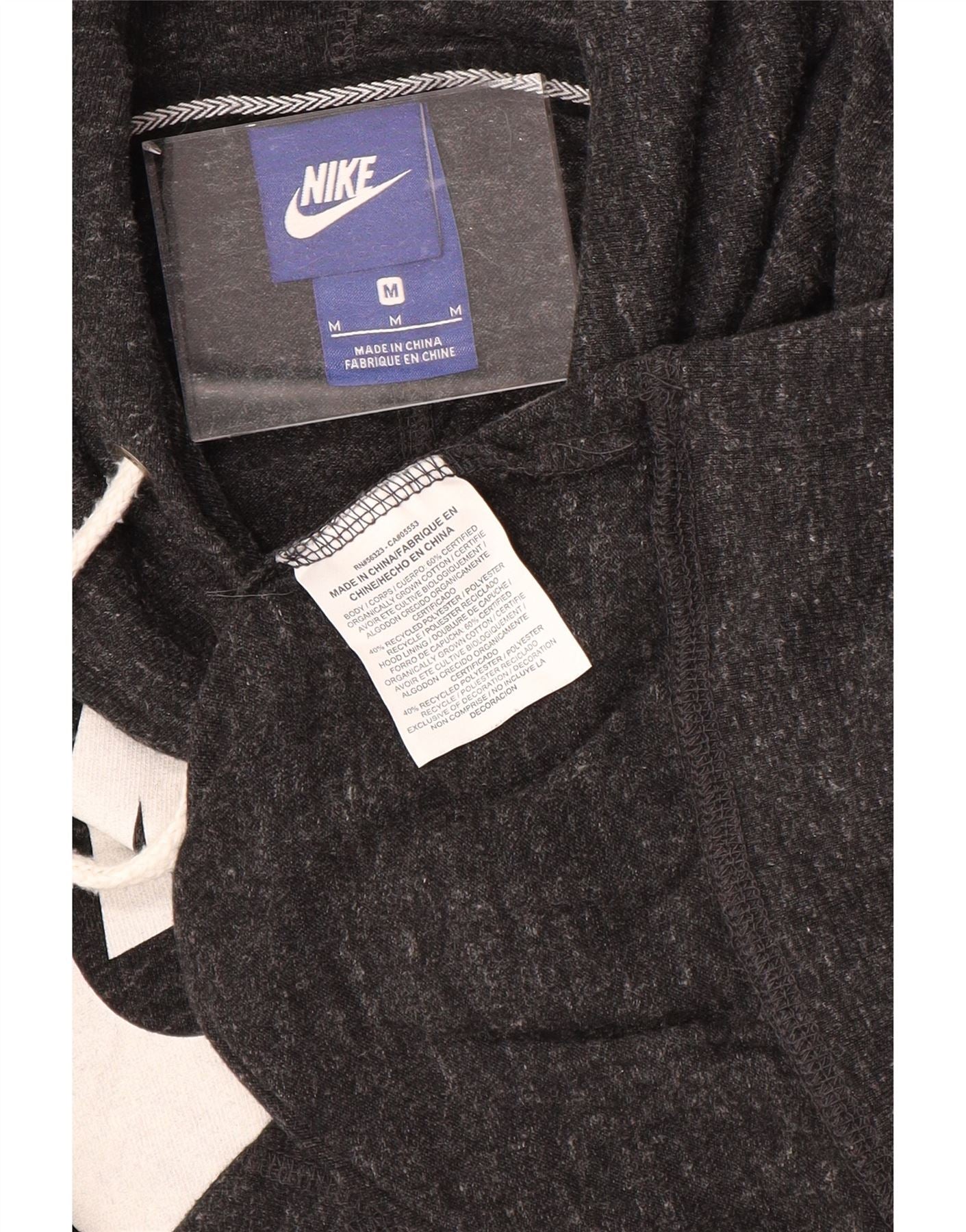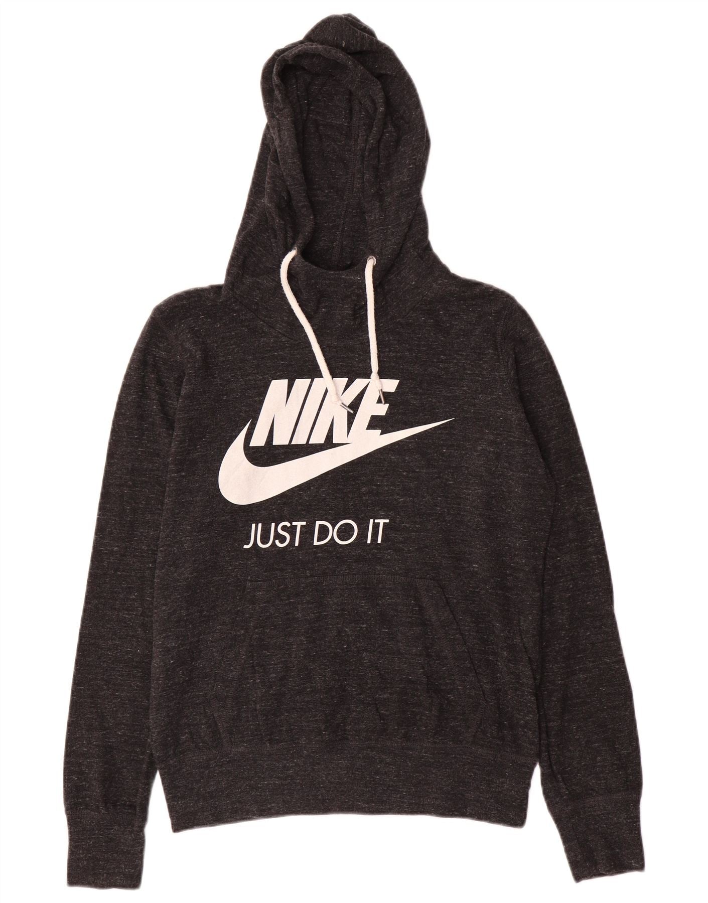 NIKE Womens Graphic Hoodie Jumper UK 14 Medium Grey Flecked Cotton