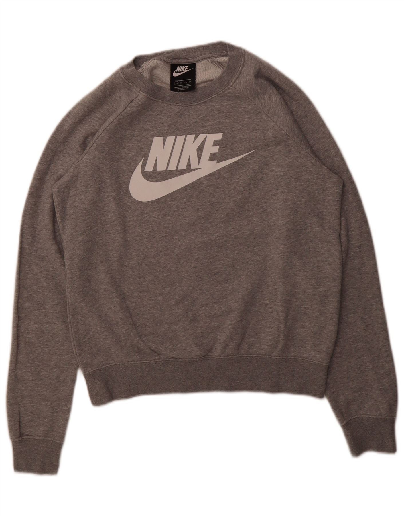 NIKE Womens Graphic Oversized Sweatshirt Jumper UK 6 XS Grey Cotton