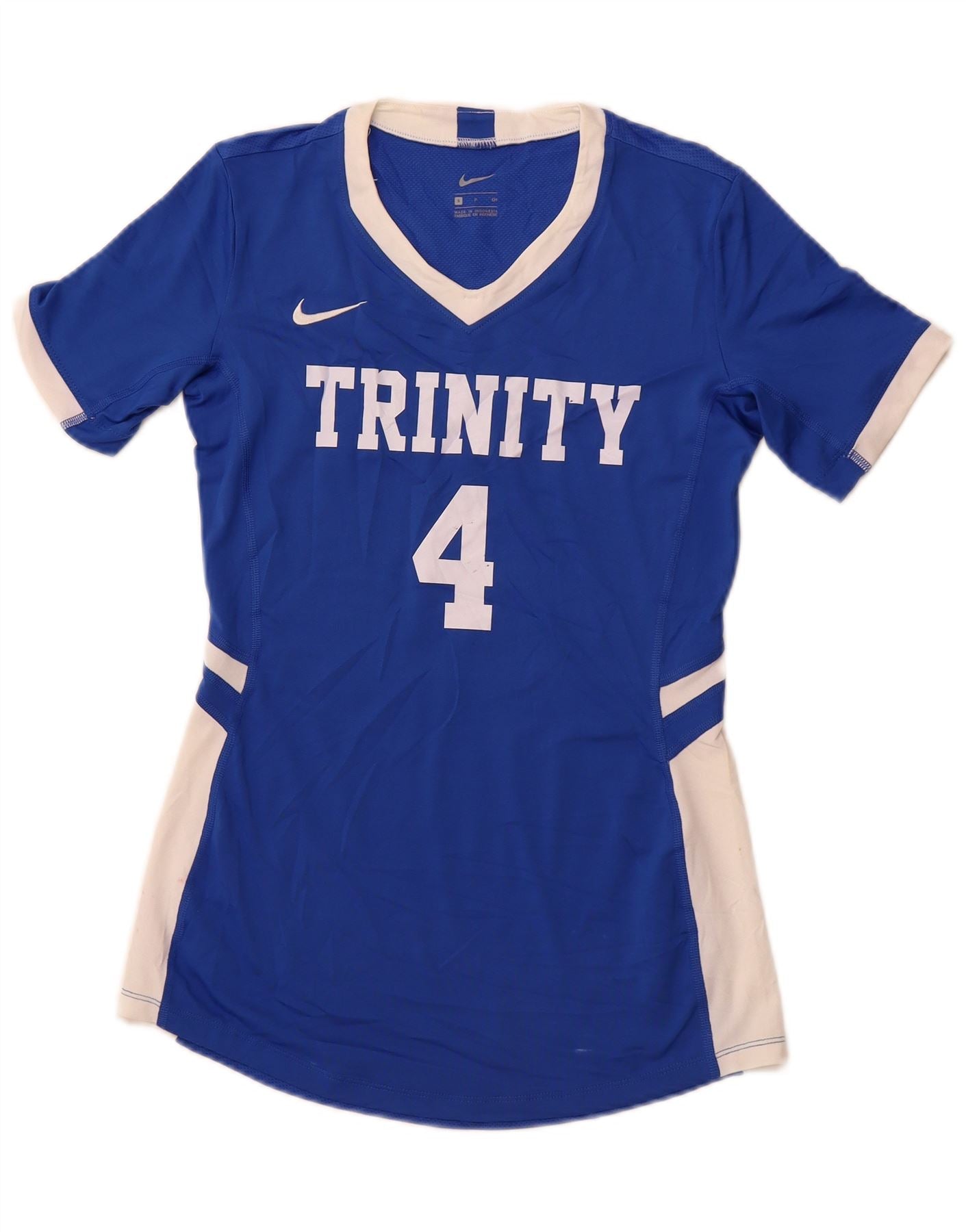 NIKE Womens Graphic T-Shirt Top UK 10 Small Blue Colourblock Polyester