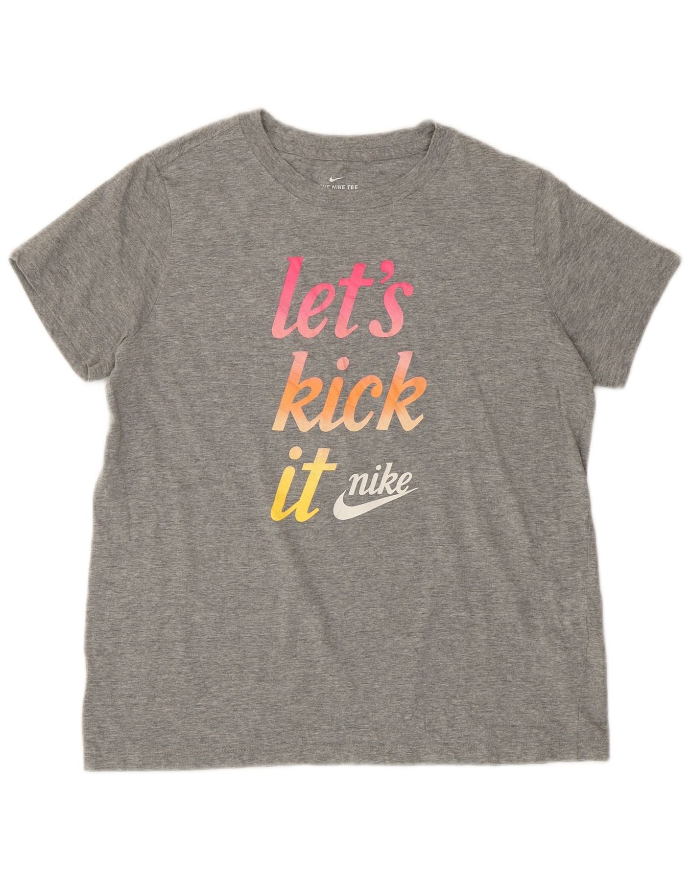 NIKE Womens Graphic T-Shirt Top UK 18 XL Grey Cotton