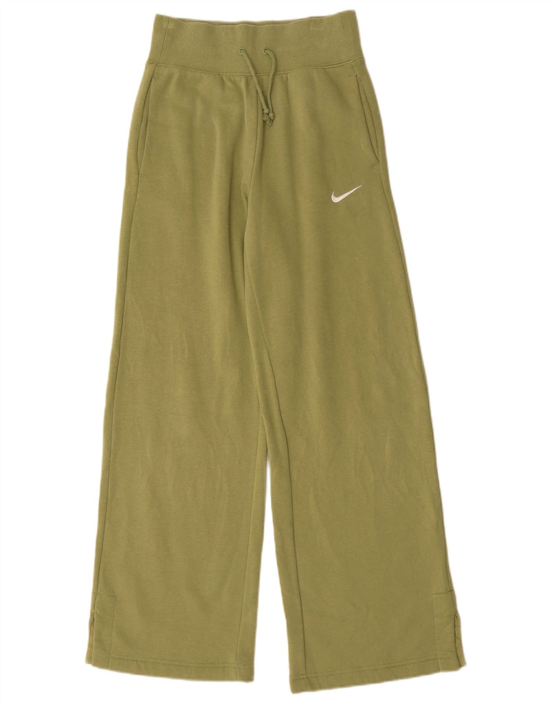NIKE Womens High Waist Wide Leg Tracksuit Trousers UK 6 XS Khaki Cotton