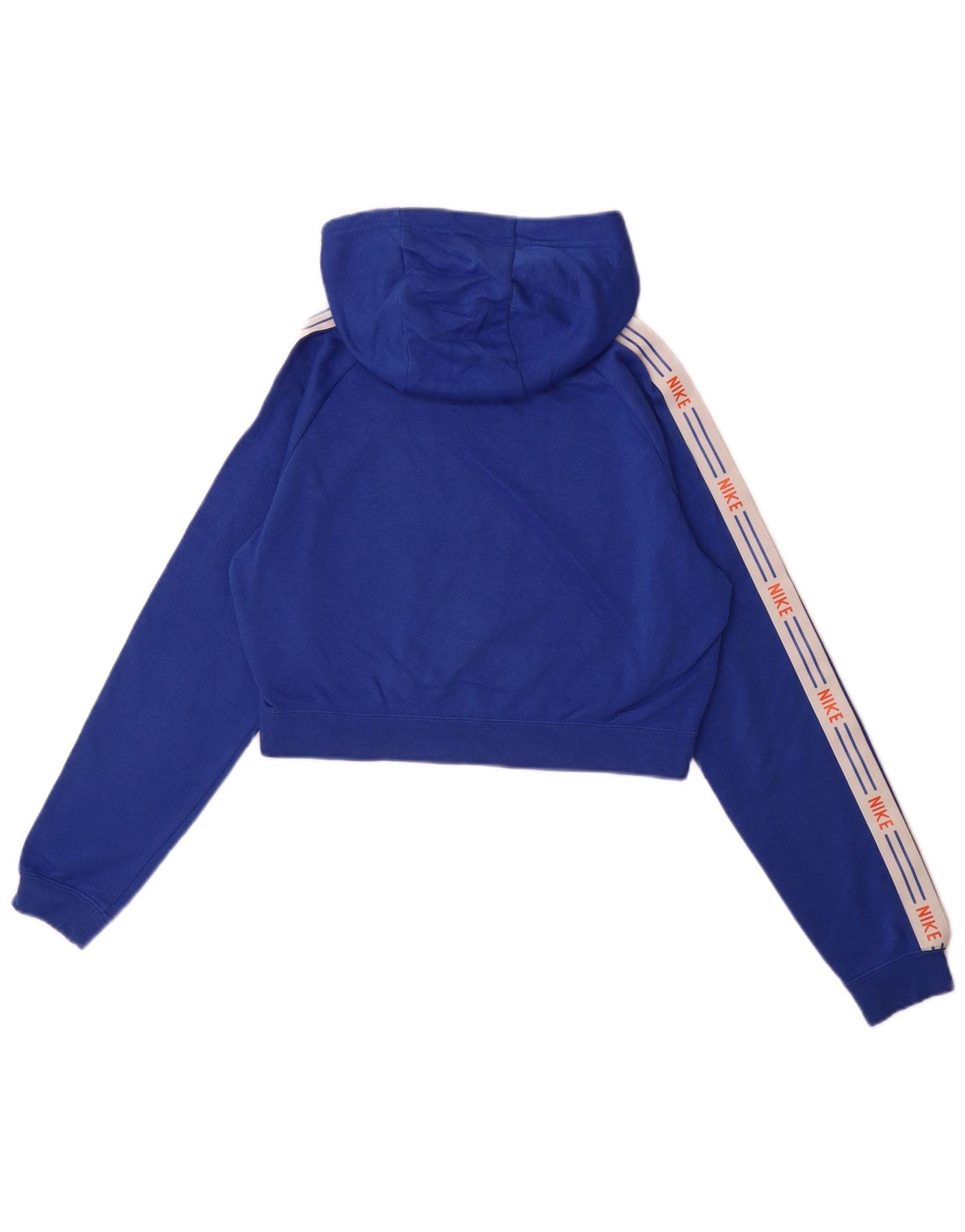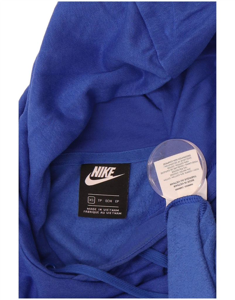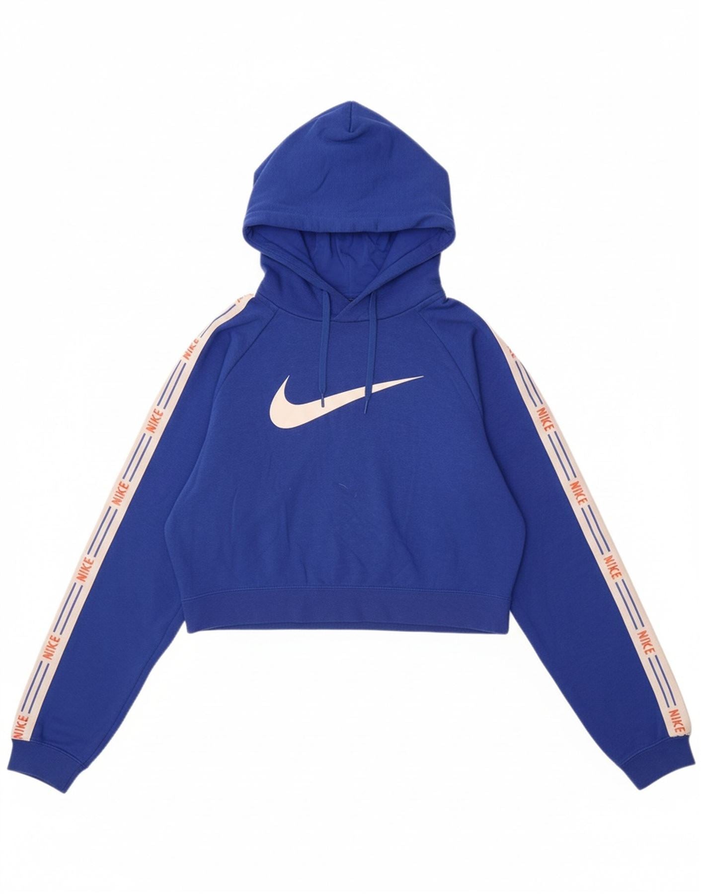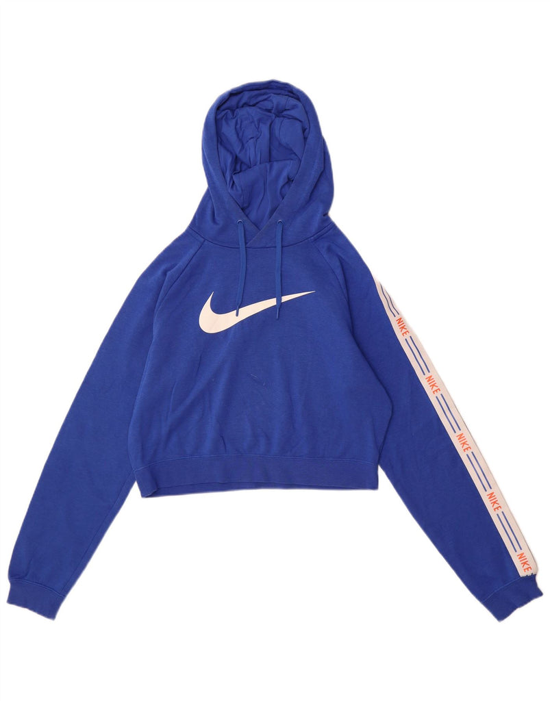 NIKE Womens Oversized Crop Graphic Hoodie Jumper UK 6 XS Blue Cotton
