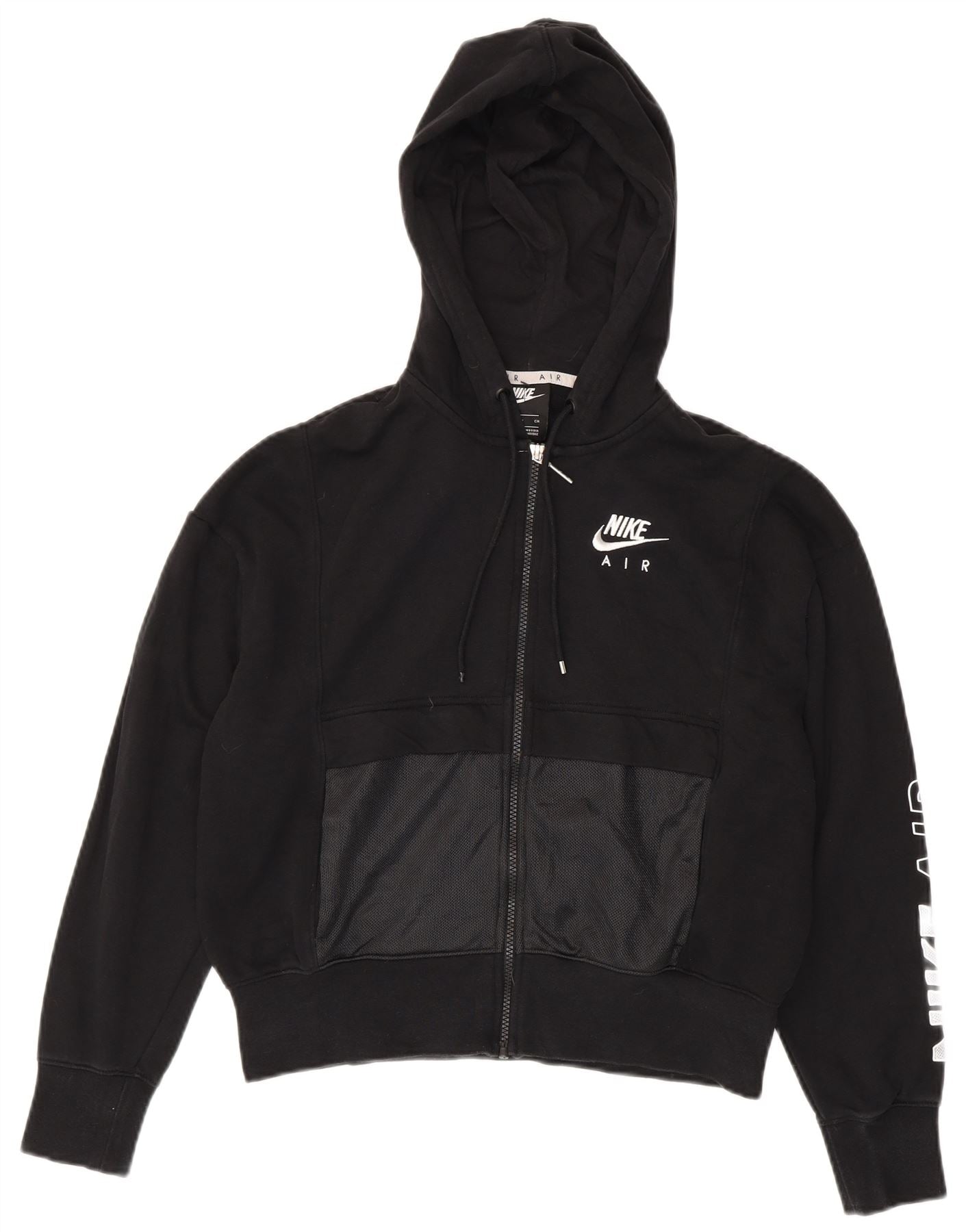 NIKE Womens Oversized Crop Graphic Zip Hoodie Sweater UK 10 Small Black