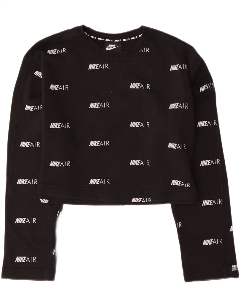 NIKE Womens Oversized Crop Sweatshirt Jumper UK 10 Small Black Spotted