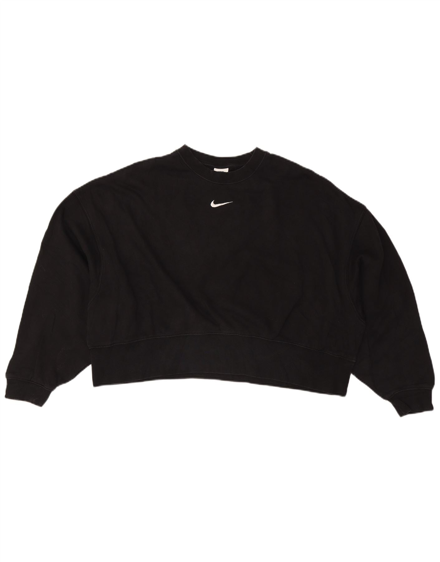 NIKE Womens Oversized Crop Sweatshirt Jumper UK 14 Medium Black Cotton