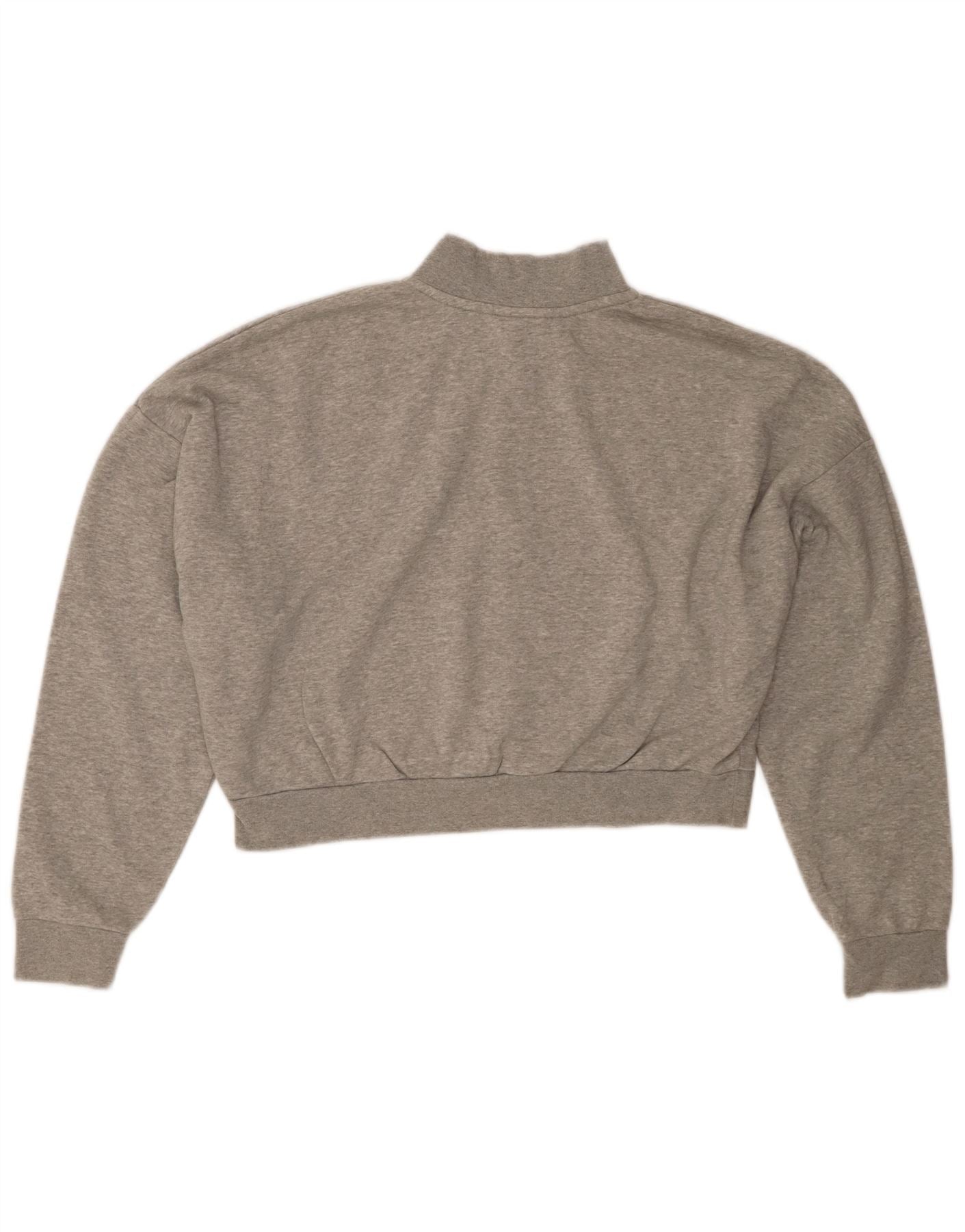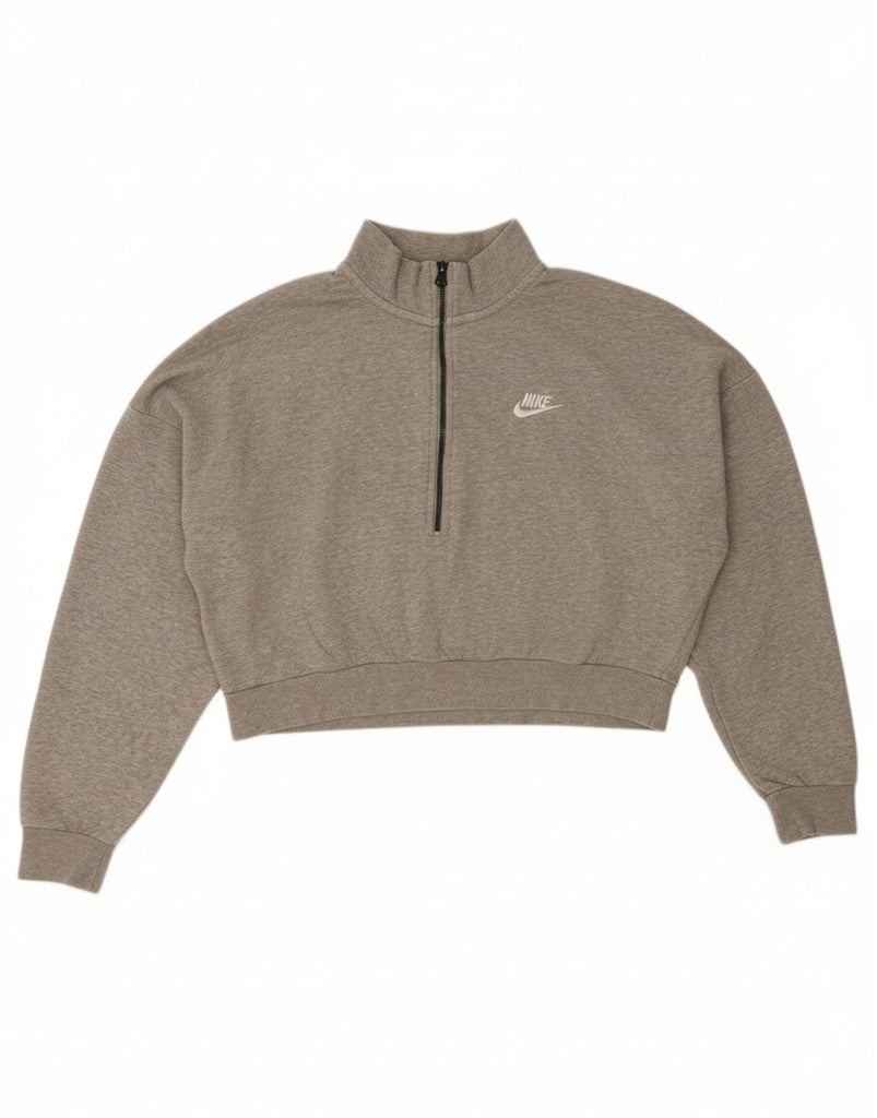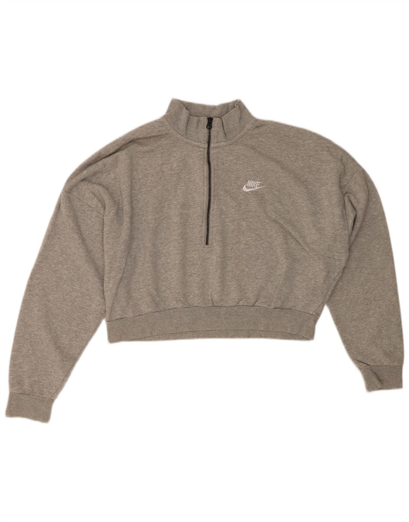 NIKE Womens Oversized Crop Zip Neck Sweatshirt Jumper UK 16 Large Grey