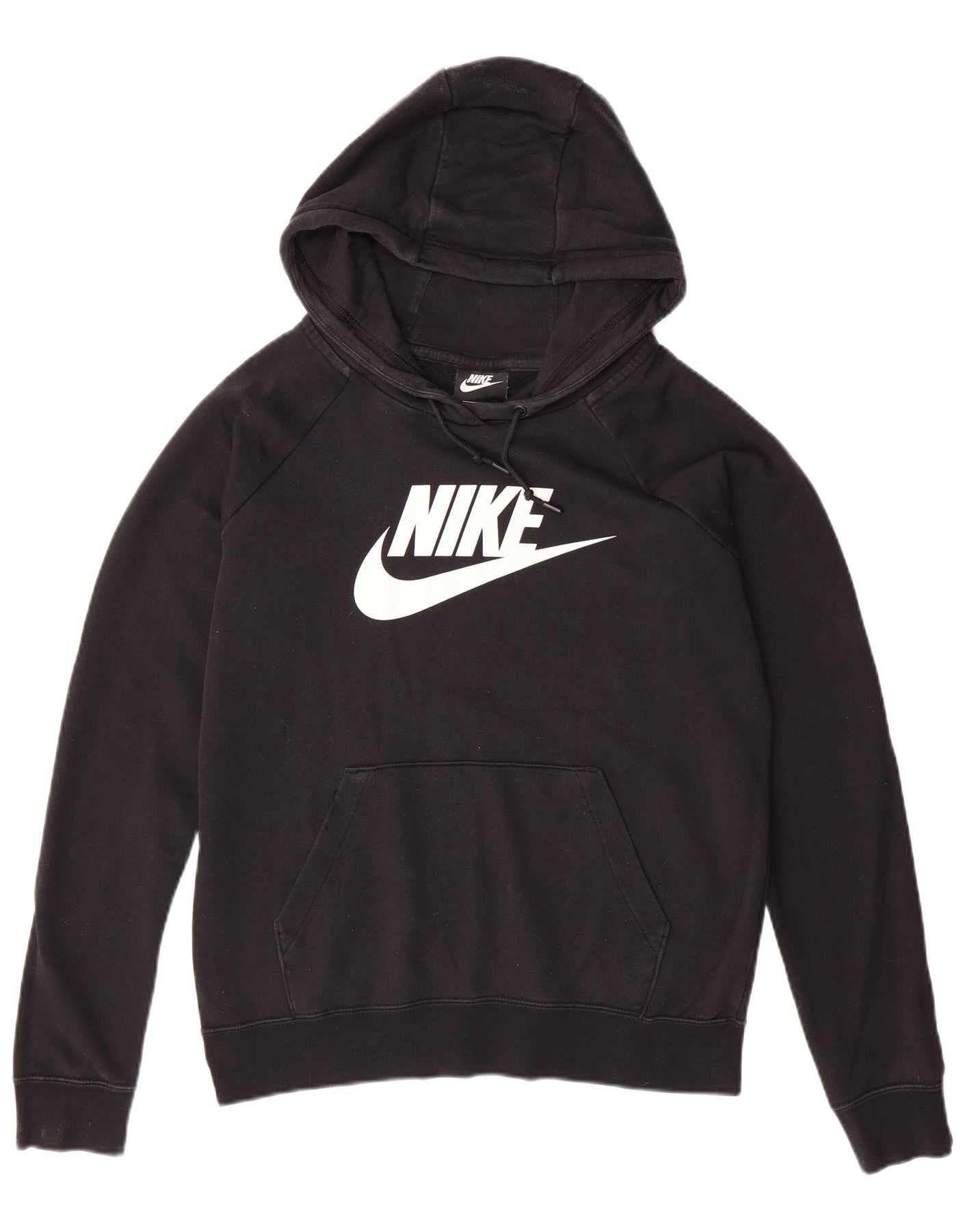 NIKE Womens Oversized Graphic Hoodie Jumper UK 10 Small Black Cotton