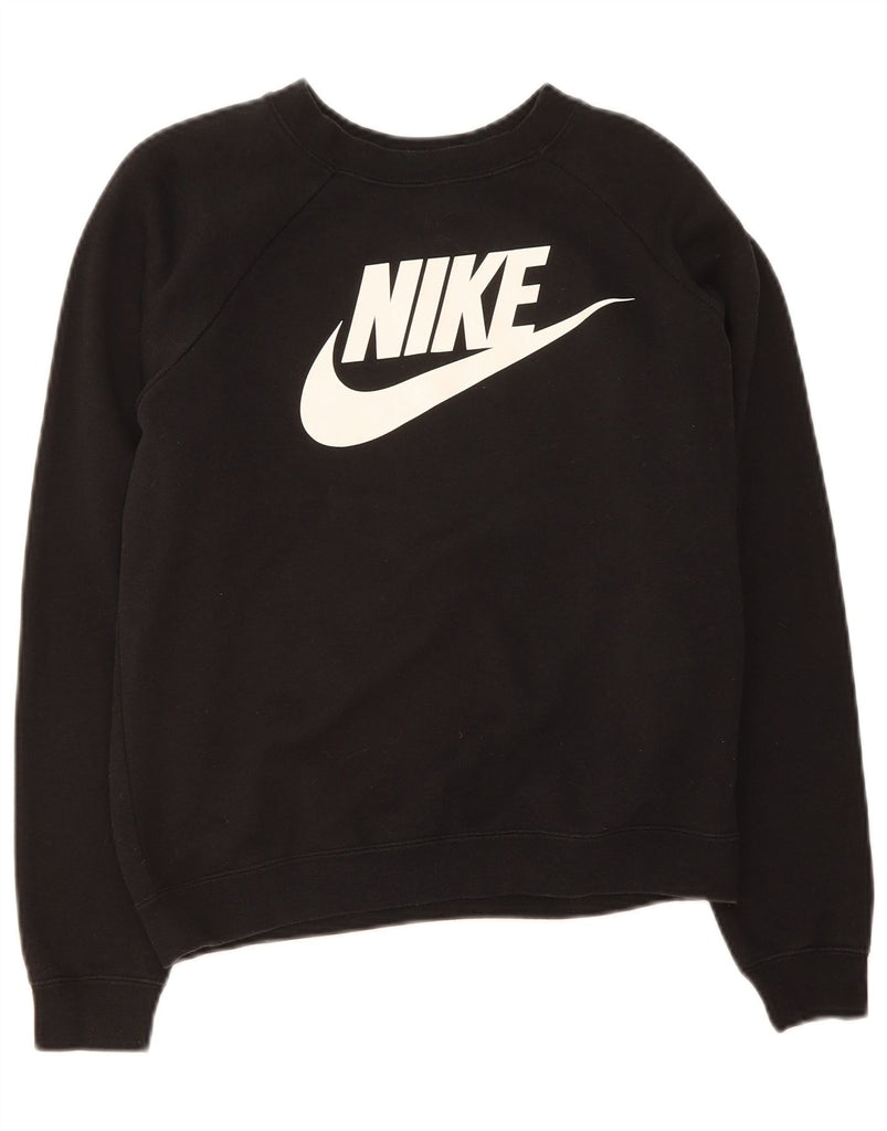 NIKE Womens Oversized Graphic Sweatshirt Jumper UK 10 Small Black Cotton