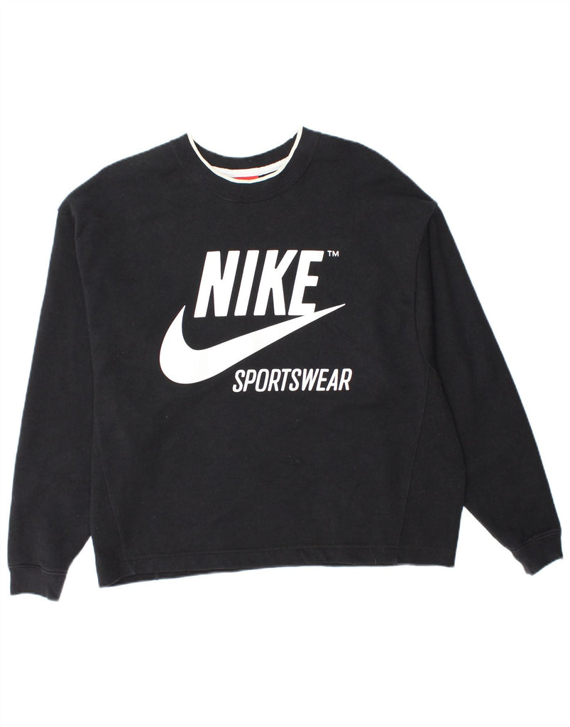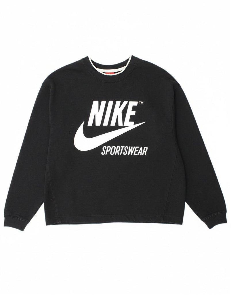 NIKE Womens Oversized Graphic Sweatshirt Jumper UK 14 Medium Black Cotton