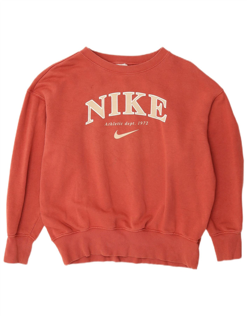 NIKE Womens Oversized Graphic Sweatshirt Jumper UK 6 XS Pink Cotton