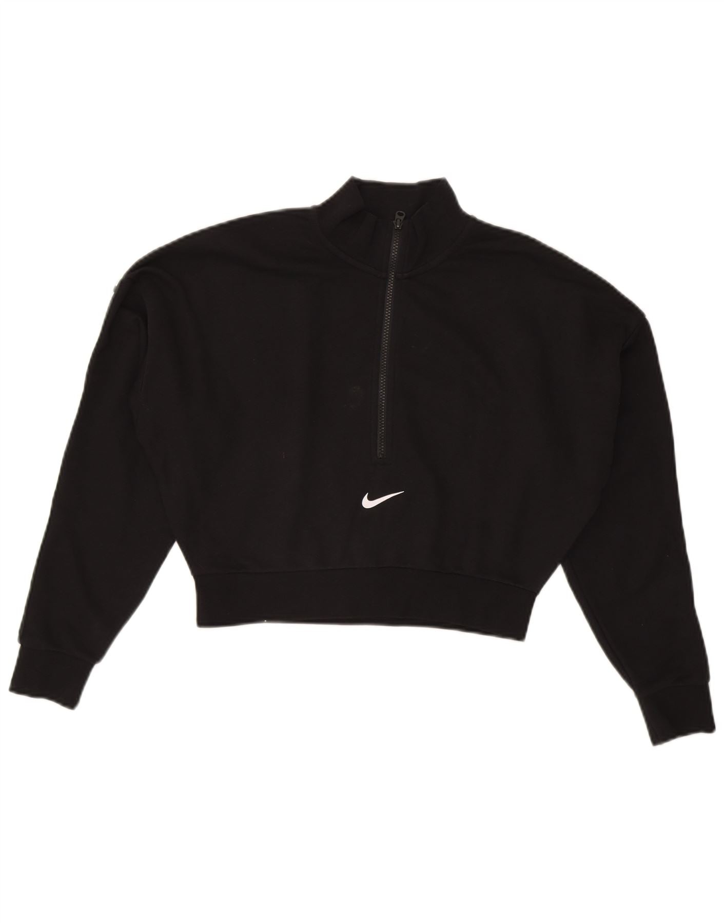 NIKE Womens Oversized Graphic Zip Neck Sweatshirt Jumper UK 10 Small Black