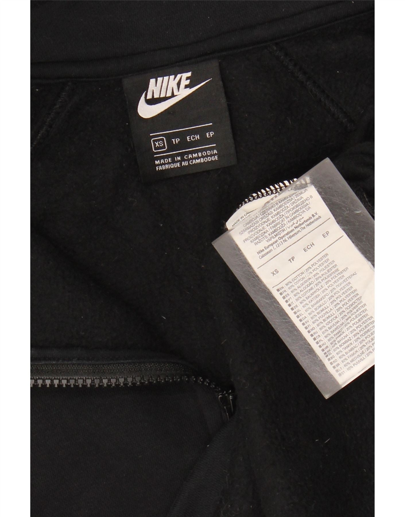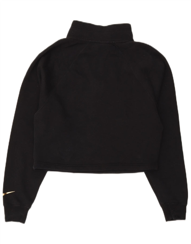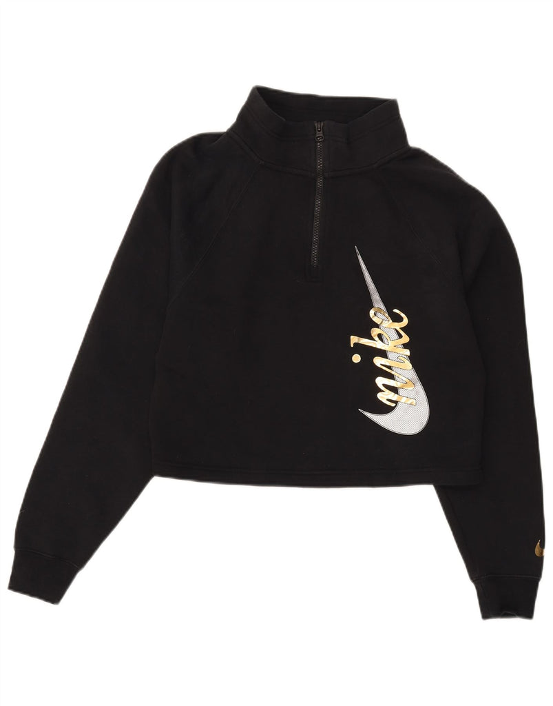 NIKE Womens Oversized Graphic Zip Neck Sweatshirt Jumper UK 6 XS Black
