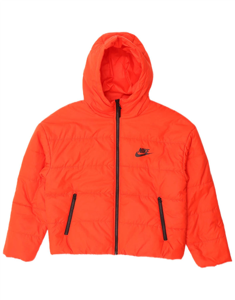 NIKE Womens Oversized Hooded Padded Jacket UK 14 Medium Red Polyester