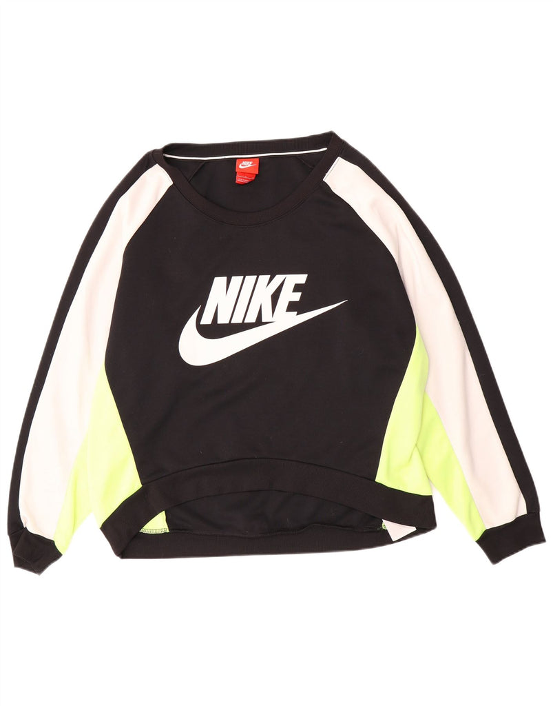 NIKE Womens Oversized Sweatshirt Jumper UK 16 Large Black Colourblock