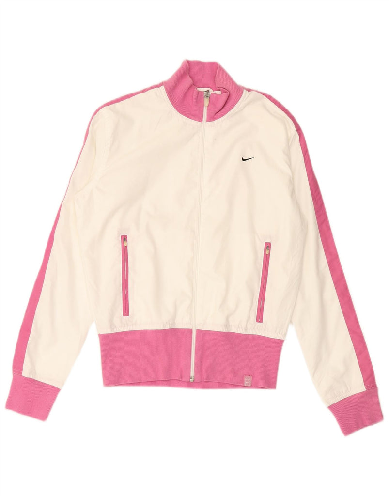 NIKE Womens Oversized Tracksuit Top Jacket UK 8/10 Small White Colourblock