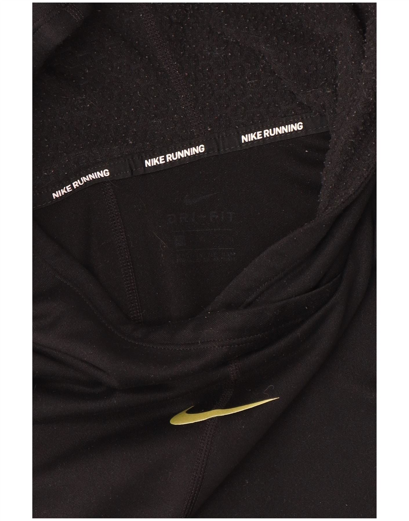 NIKE Womens Running Hooded Graphic Top Long Sleeve UK 14 Medium Black