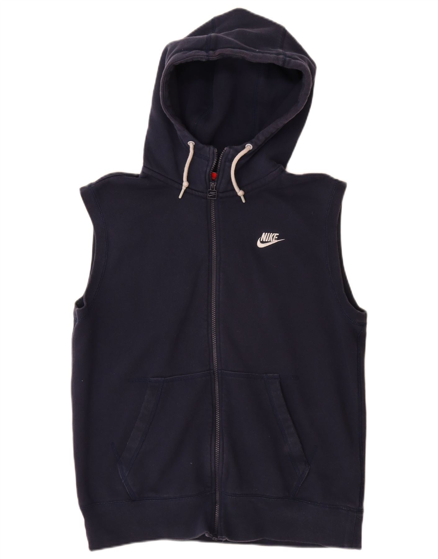 NIKE Womens Sleeveless Zip Hoodie Sweater UK 16 Large Navy Blue Cotton