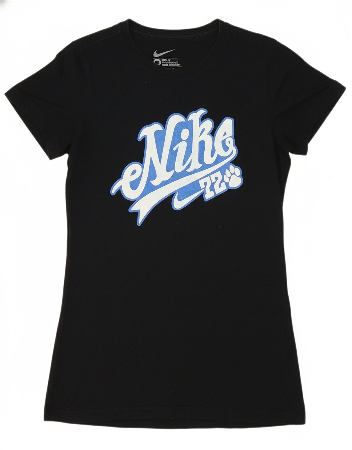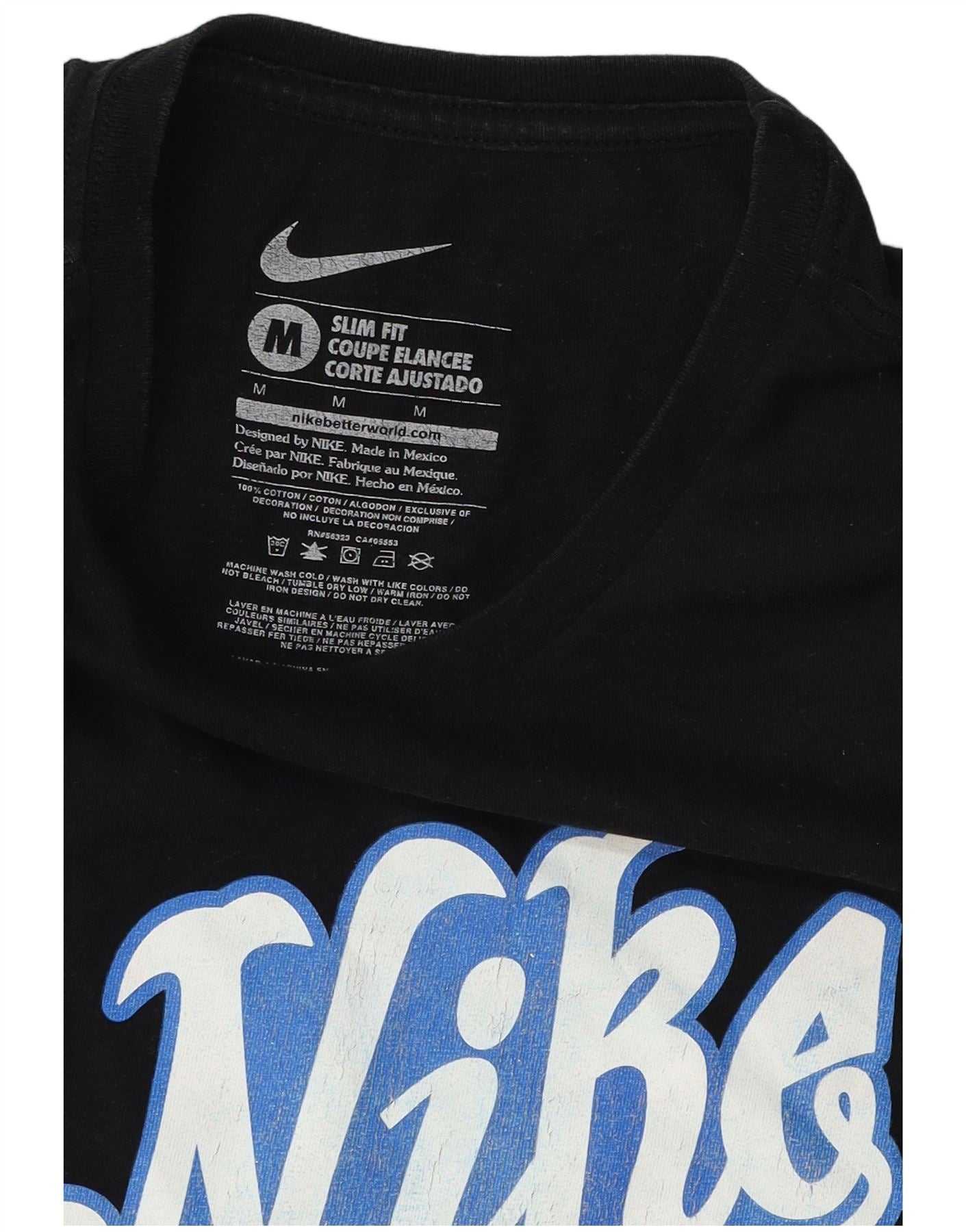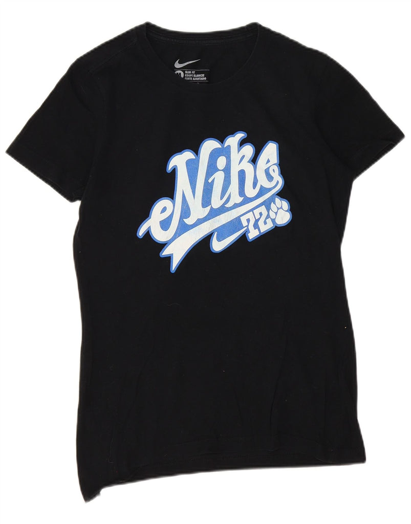 NIKE Womens Slim Fit Graphic T-Shirt Top UK 12 Medium Black Cotton