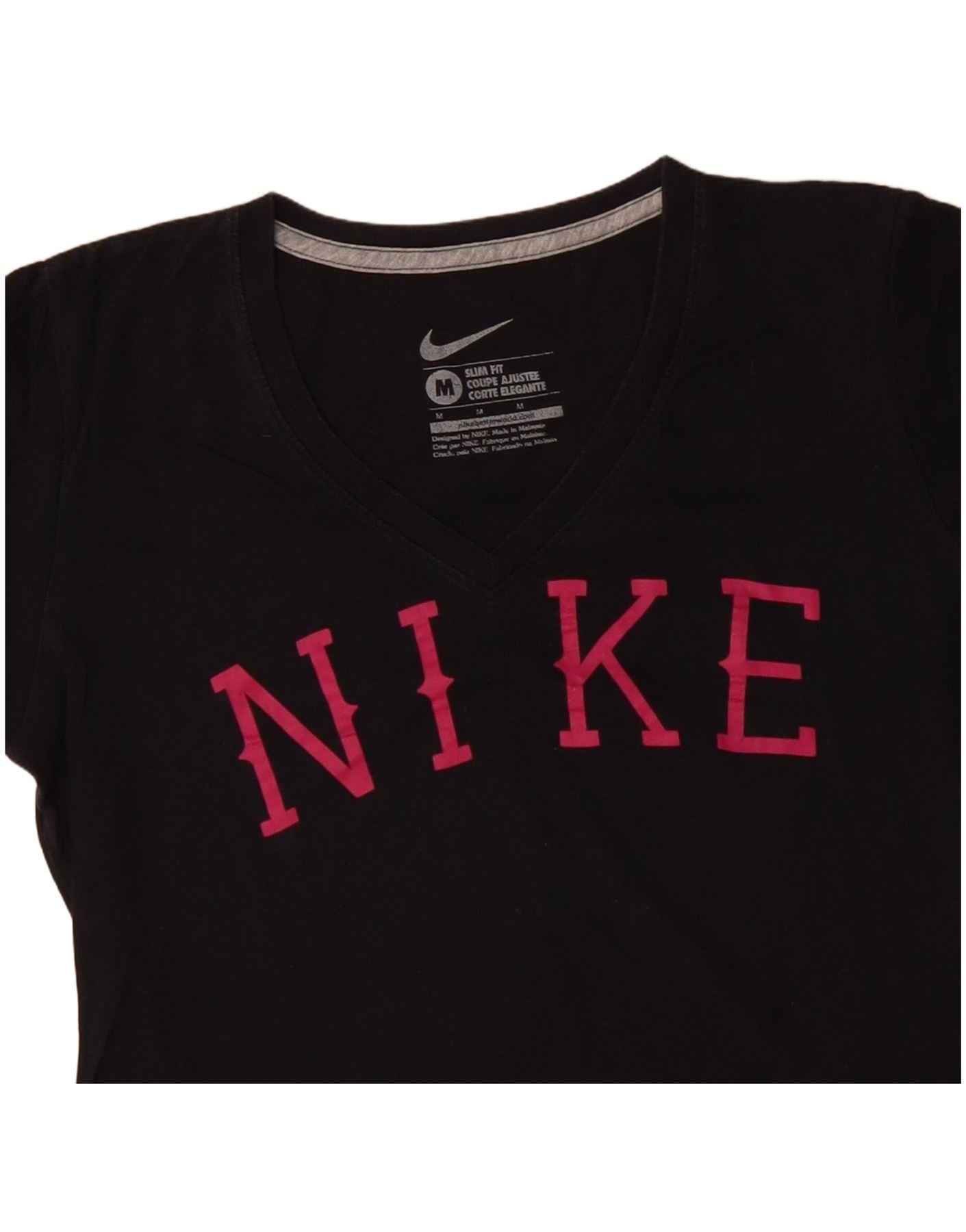 NIKE Womens Slim Fit Graphic T-Shirt Top UK 12 Medium Black Cotton