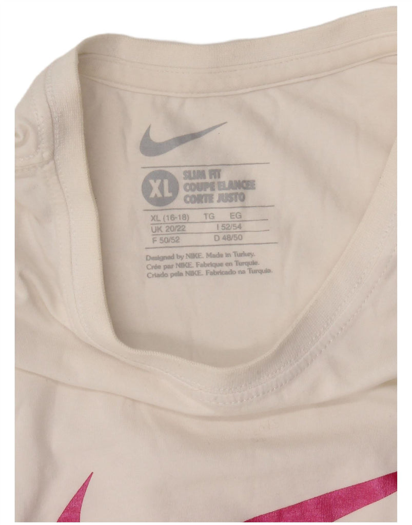NIKE Womens Slim Fit Graphic T-Shirt Top UK 20/22 XL White Sports