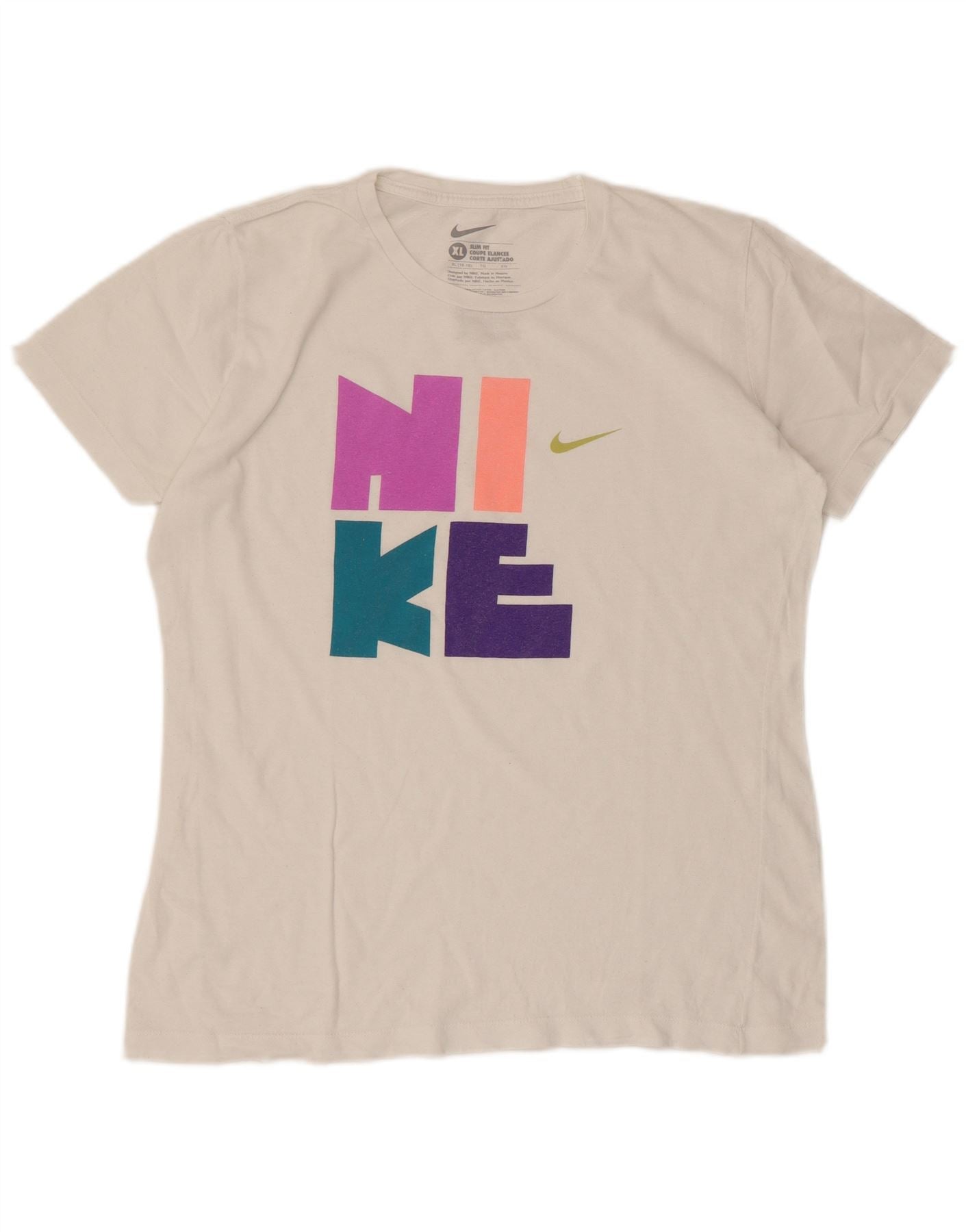 NIKE Womens Slim Fit Graphic T-Shirt Top US 16/18 XL White Cotton