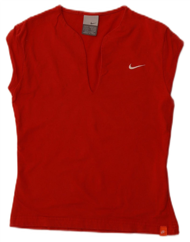 - AI Description: This Nike women's T-shirt top is crafted from a lightweight polyester blend, offering a smooth, comfortable feel. The fabric provides excellent stretch, ensuring flexibility. It features a flattering V-neckline and classic short sleeves. The regular fit ensures ease of movement, making it ideal for sports or casual wear. A subtle Nike logo provides a signature accent to this pullover style.