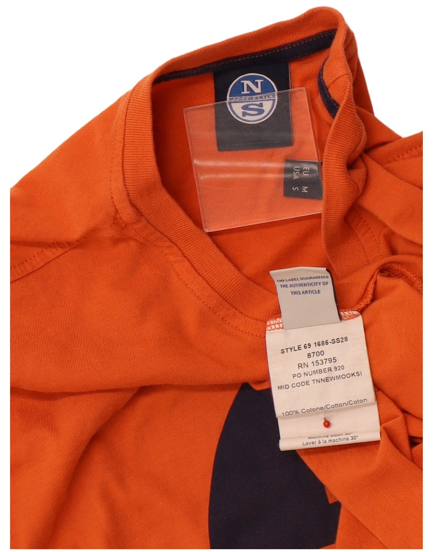 NORTH SAILS Mens Graphic T-Shirt Top Medium Orange Colourblock Cotton